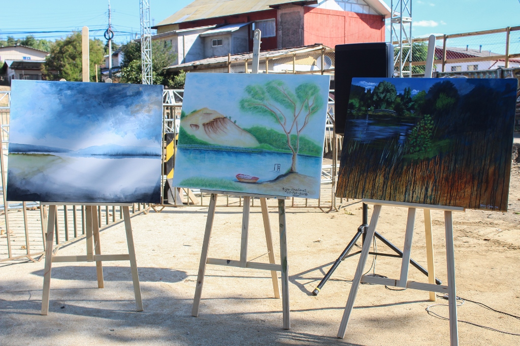 Finalmente, y luego de dos días de trabajo in situ, las obras fueron expuestas en la Costanera Sur de la Laguna La Señora de la comuna de Laja, obras que serán expuestas en la primera pinacoteca municipal pero además, durante una gira nacional durante este 2018.