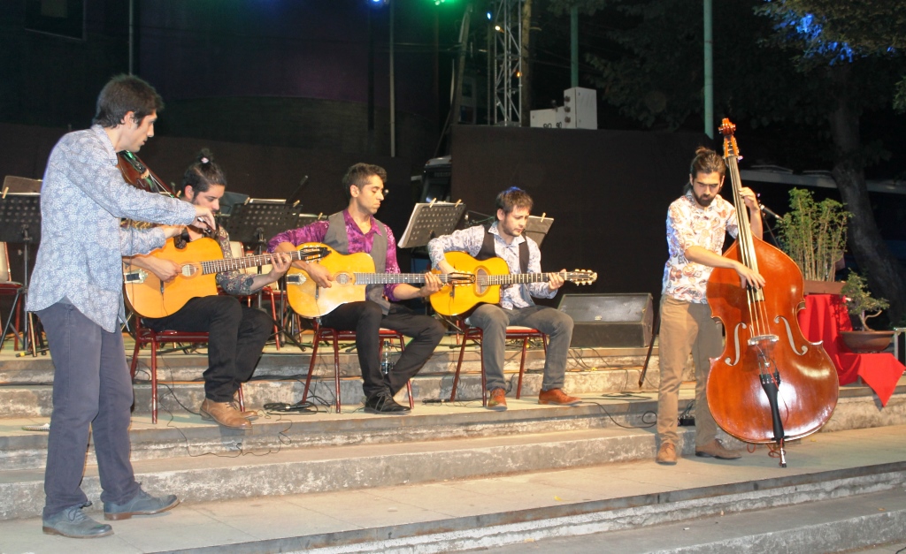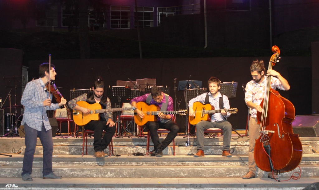 Los responsables de abrir la noche, fueron los Temibles Sandovales quienes hicieron disfrutar al público con su estilo de jazz gitano o jazz manouche, creado por el legendario guitarrista Django Reinhardt.