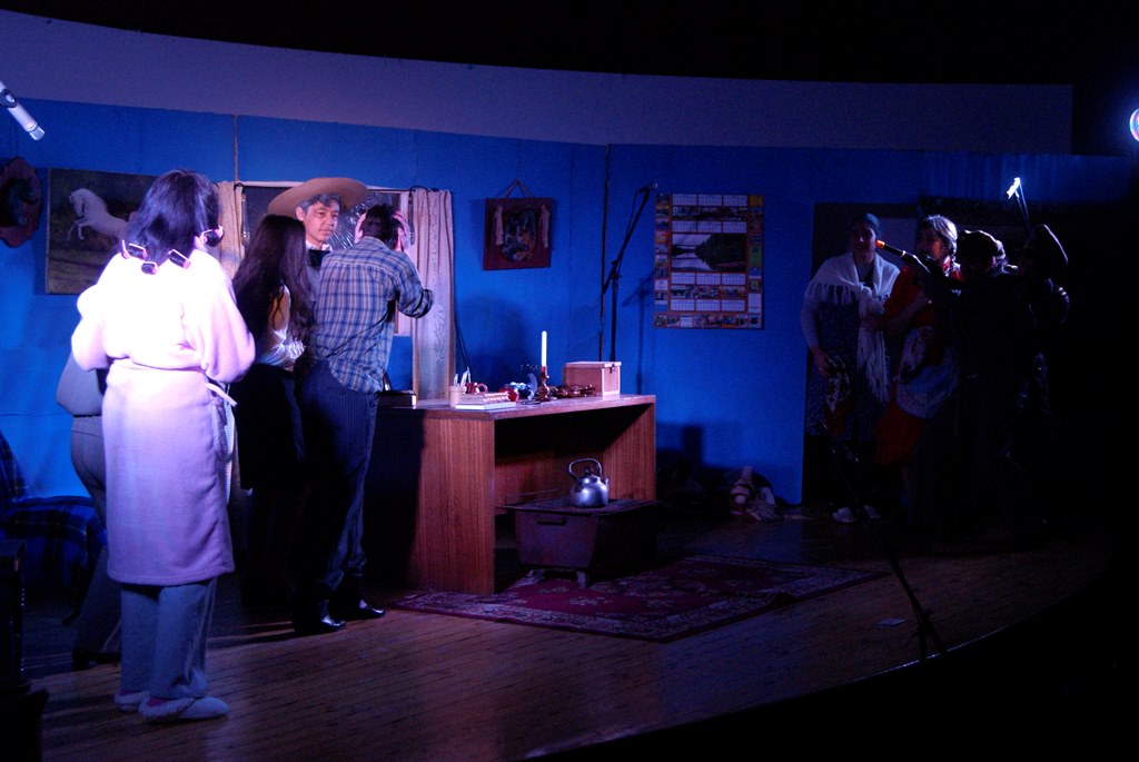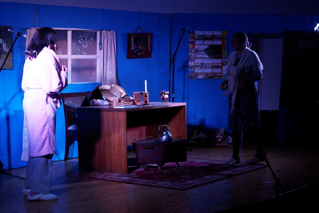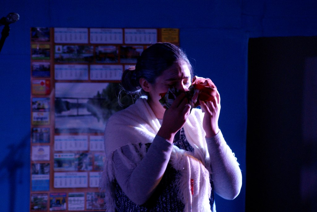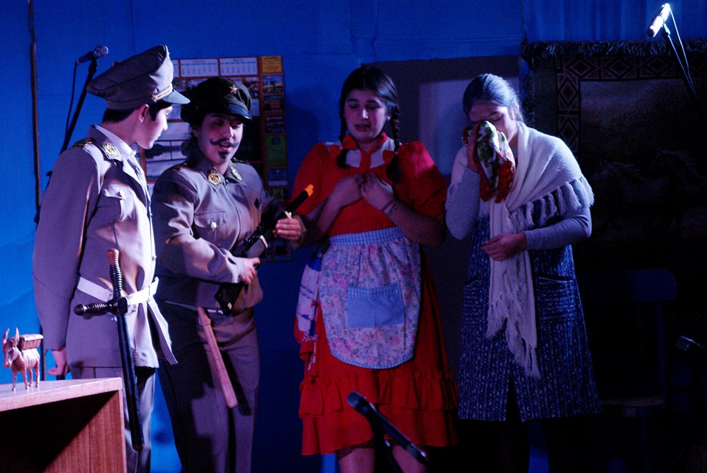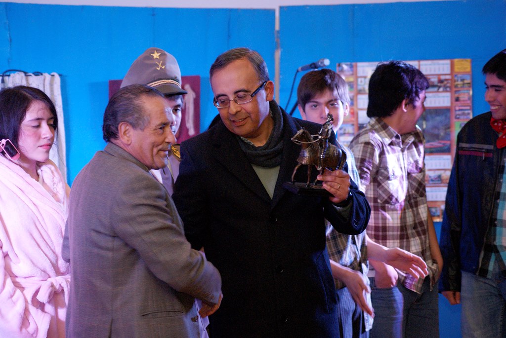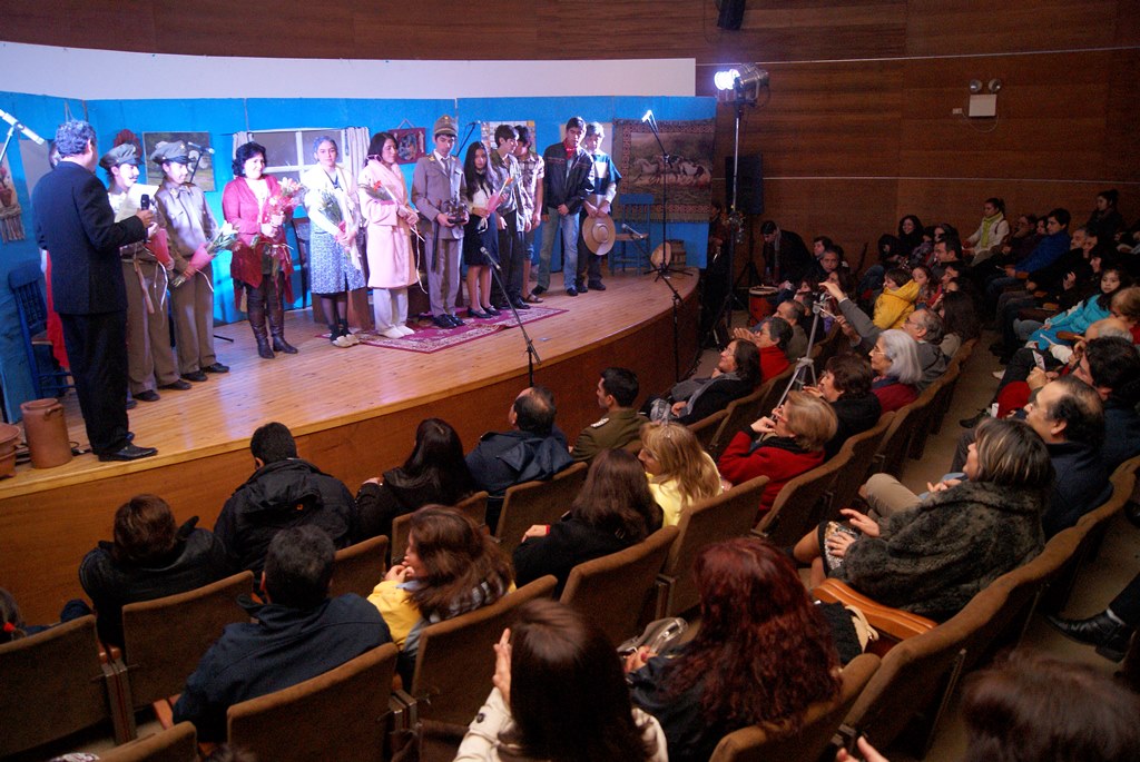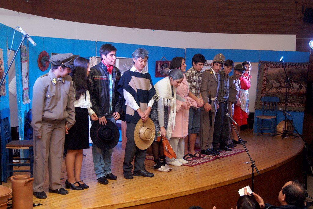 El alcalde José Pinto entregó un quijote al rector del colegio Julio González, como una forma de agradecer por este aporte que ellos hacen a la cultura comunal, a su vez obsequió flores a las actrices y directoras de la obra.