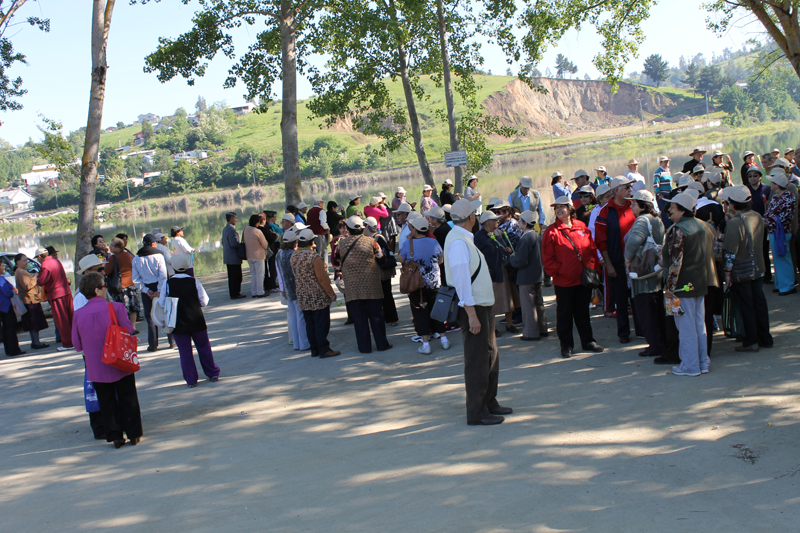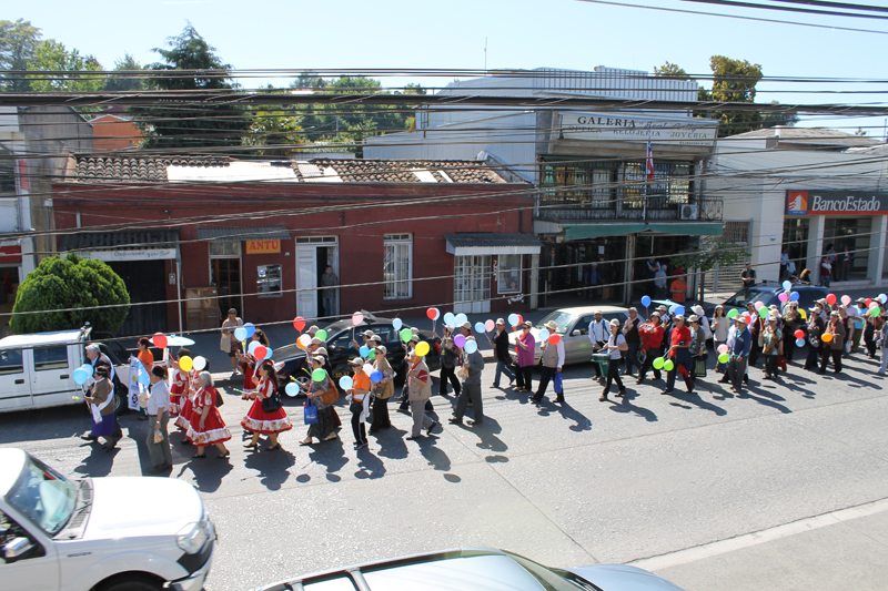 En el principal espacio público comunal fueron recibidos por el alcalde José Pinto junto a concejales de la comuna y tuvieron una mañana de música, entretención y baile, del cual muchos se hicieron participes, siendo esto amenizado por el dúo Los Correntinos y el grupo folclórico Elia Esperanza.