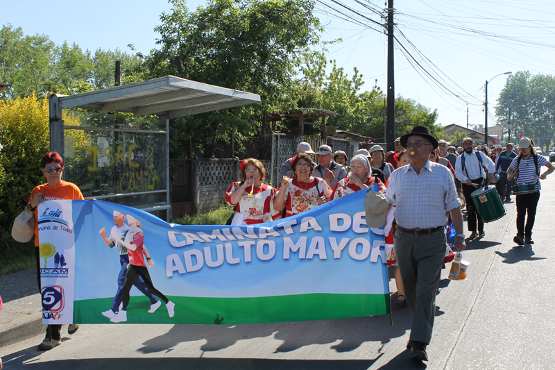 Adultos Mayores lajinos dieron vida a su tradicional caminata en el marco de las celebraciones del Mes del Adulto Mayor. Actividad que partió a las 10 horas del viernes 24 desde la costanera sur de la laguna “La Señoraza”, desde donde unos cuatrocientos abuelitos y abuelitas, caminaron hasta la plaza cívica con carteles que los identificaban como miembros de los diferentes clubes, rurales y urbanos. En su andar portaron globos, entonaron cánticos y por sobre todo siempre demostraron mucho ánimo y entusiasmo, siendo encabezados por los reyes Sra. Elsa Salamanca Contreras y don Bartolo Valenzuela Rebolledo y acompañados por personal municipal.