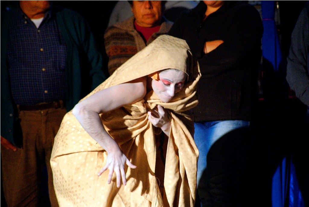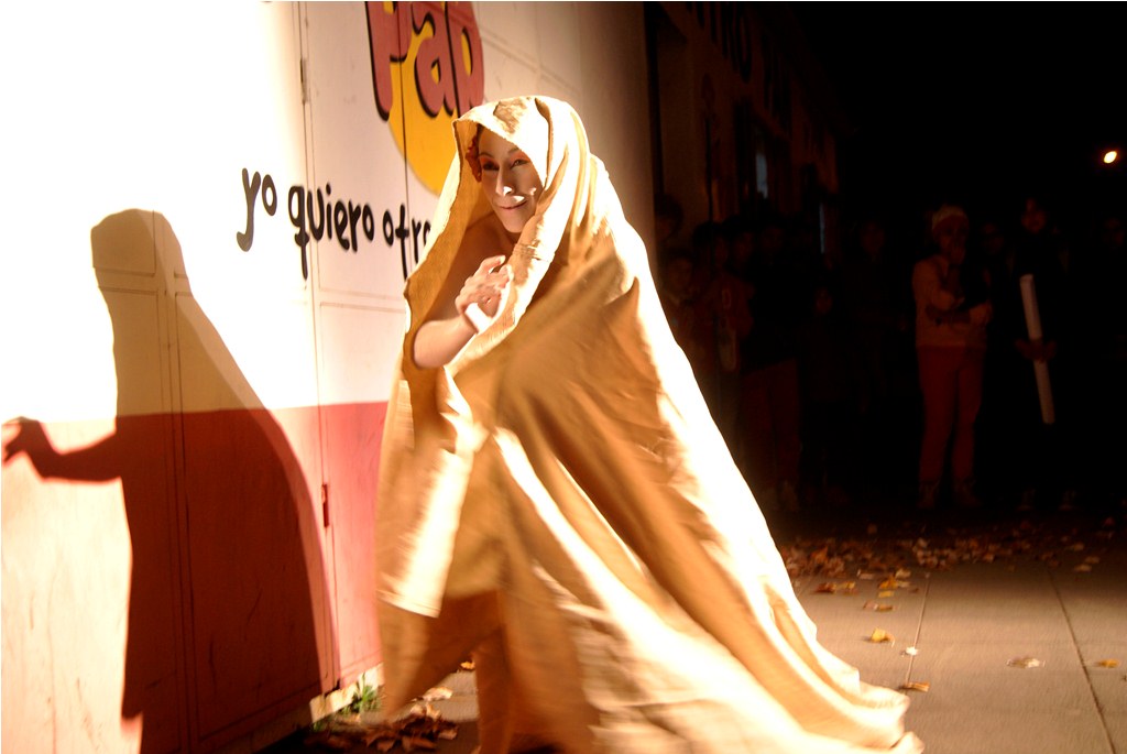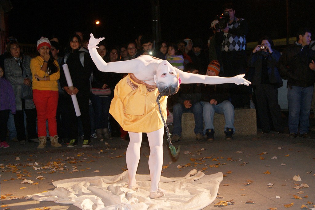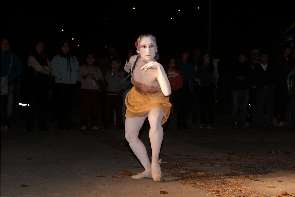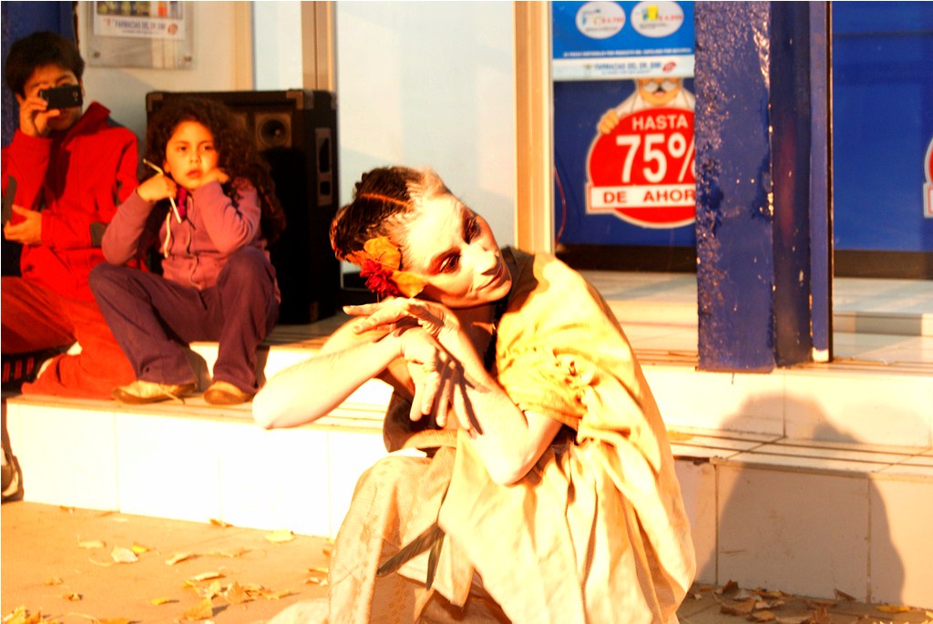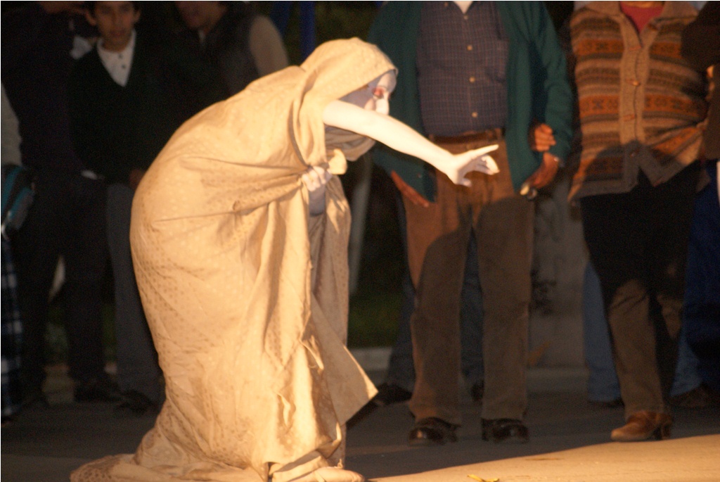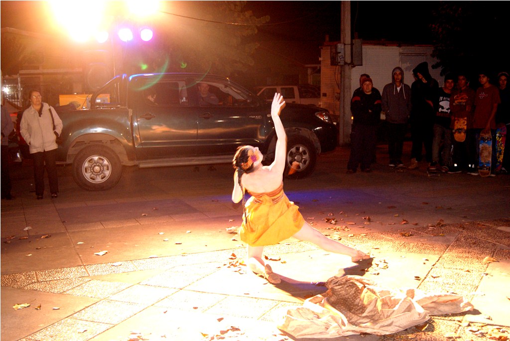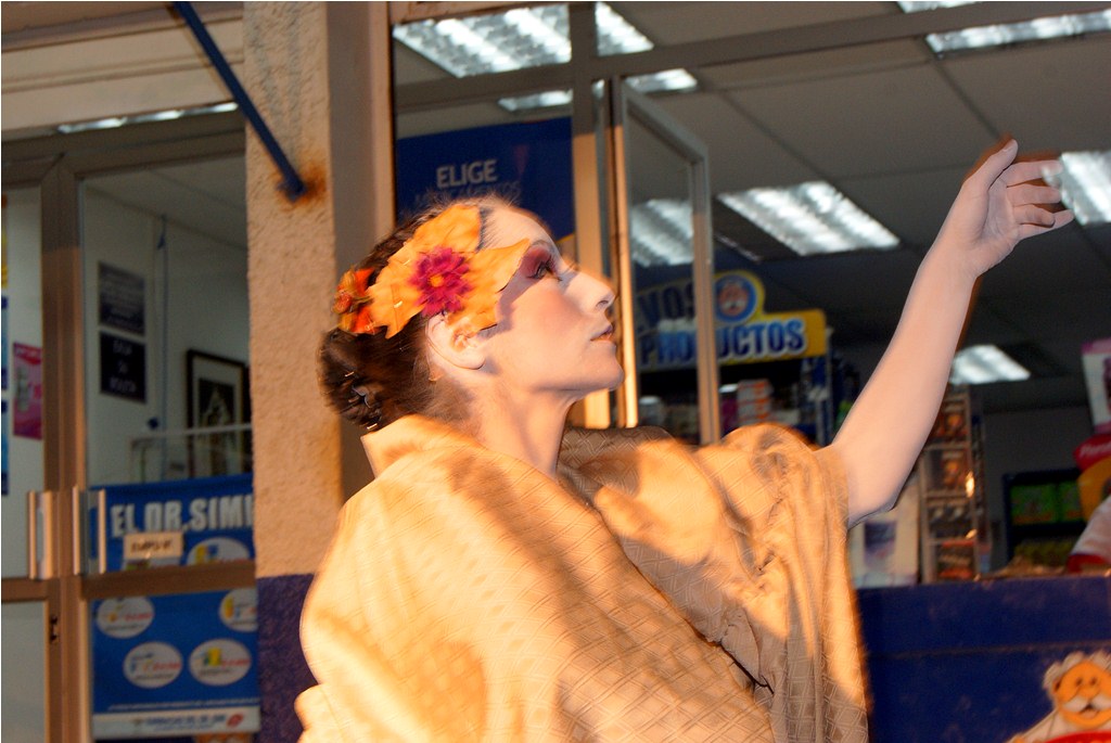 Agradable sorpresa fue para los transeúntes la intervención urbana realizada la noche del pasado martes 30 en el centro de Laja, cuando una bailarina con vestuario y maquillajes muy propios del teatro japonés, interrumpió la tranquilidad del centro, danzando en solitario, en un recorrido que inició desde la salida del recinto Facela llegando hasta la plaza cívica, acompañada por un móvil que proveía iluminación y música para una adecuada performance, todo organizado y apoyado por el área Cultural del Municipio Lajino.