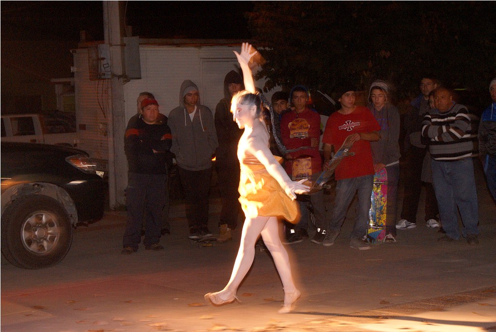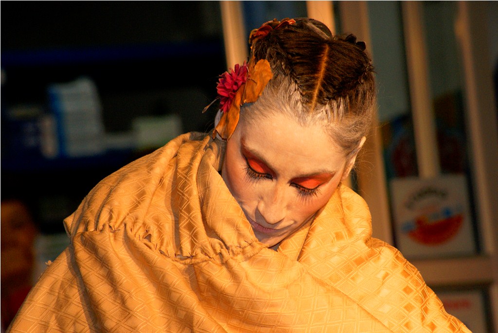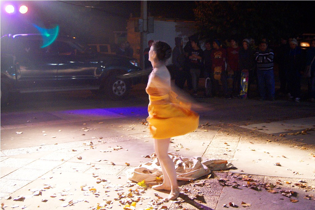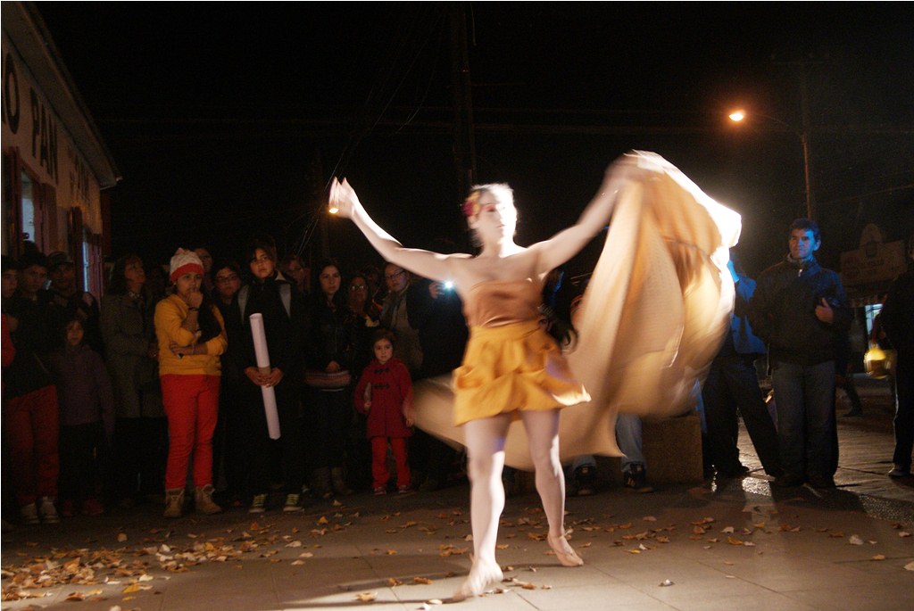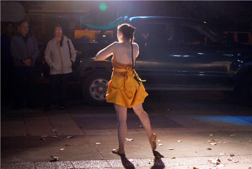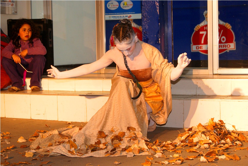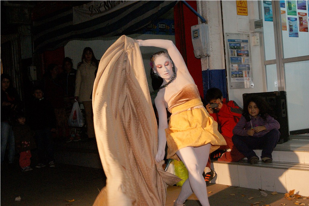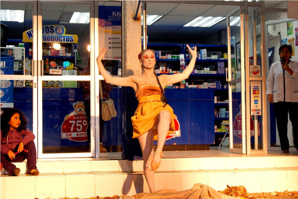Agradable sorpresa fue para los transeúntes la intervención urbana realizada la noche del pasado martes 30 en el centro de Laja, cuando una bailarina con vestuario y maquillajes muy propios del teatro japonés, interrumpió la tranquilidad del centro, danzando en solitario, en un recorrido que inició desde la salida del recinto Facela llegando hasta la plaza cívica, acompañada por un móvil que proveía iluminación y música para una adecuada performance, todo organizado y apoyado por el área Cultural del Municipio Lajino.