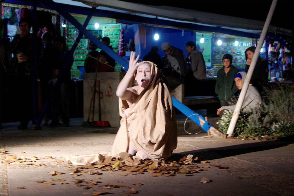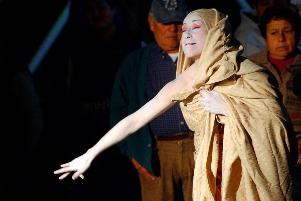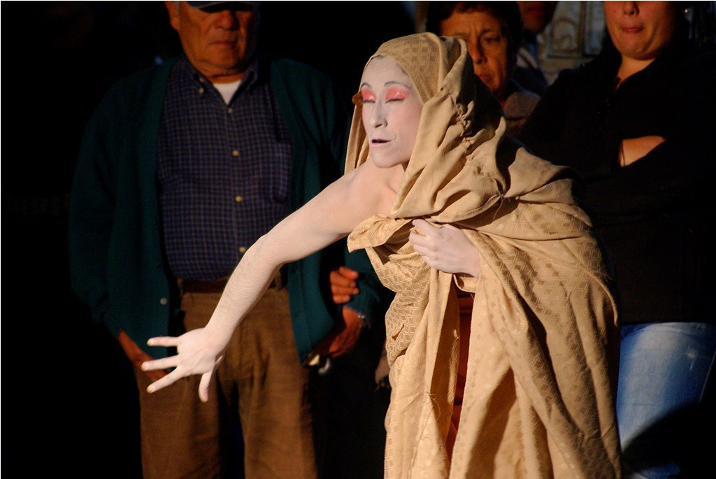 Este peculiar estilo dancístico se denomina Butho «La danza de la oscuridad» o “danza de la muerte” como se conoce en Japón, donde nació con posterioridad al bombardeo de Hiroshima, pretende recrear el caminar de los moribundos heridos a causa de dicho bombardeo. Es una danza cargada de simbolismo y sentimientos, que los lajinos supieron recibir y entender de muy buena manera, aplaudiendo al término de cada una de las estaciones que realizó la bailarina en su desplazamiento por el centro de la comuna.