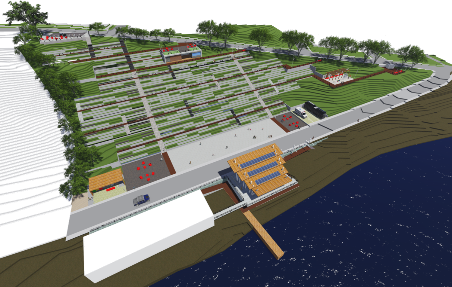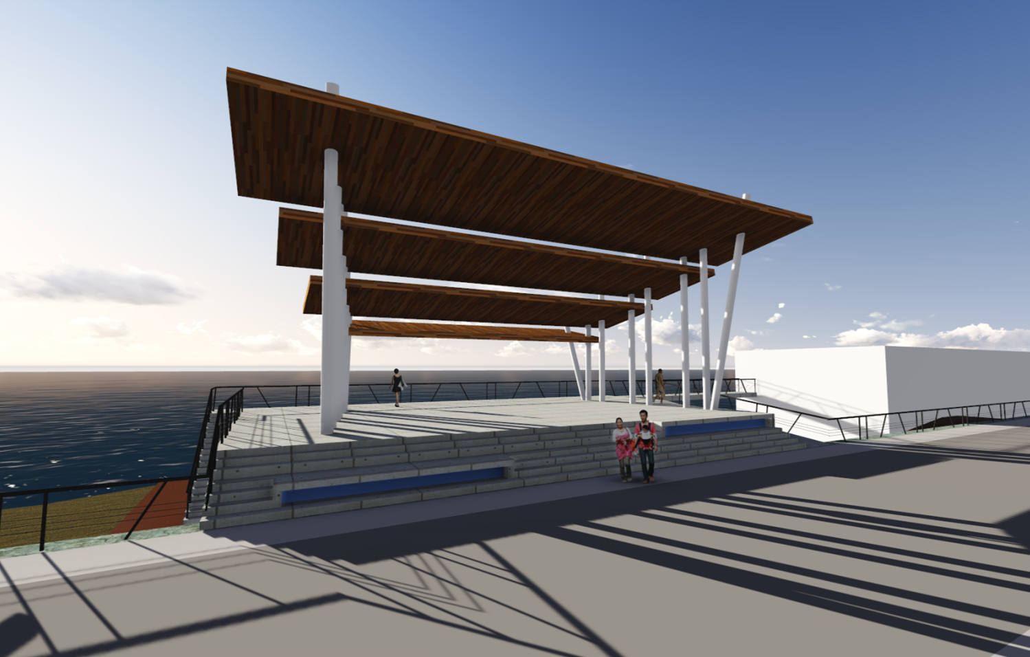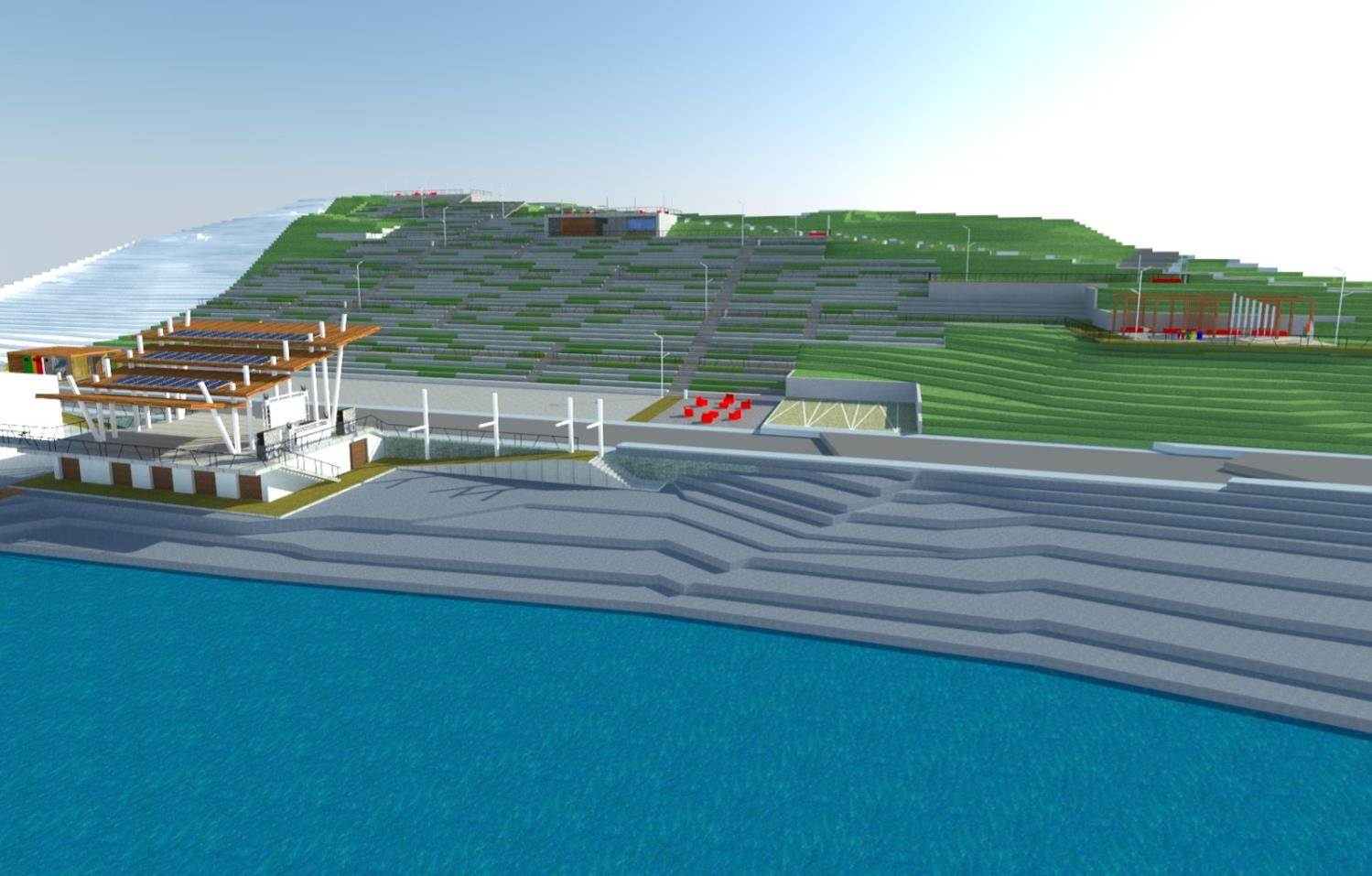 El proyecto de construcción del anfiteatro consiste en un recinto al aire libre de 9 mil m2., con un escenario funcional, con manga de acceso para artistas, camarines y bodega bajo la losa, además contemplará una rampa desde calle costanera sur a casa de botes y otro acceso a la playa por el costado del escenario. El proyecto considera graderías para 12 mil personas en hormigón en el terreno en pendiente entre calles Costanera Sur y Manuel Rodríguez y área para sillas móviles, se suma a lo anterior, caseta cerrada ubicada en el sector de graderías para control de iluminación y amplificación, más los servicios higiénicos respectivos y obras de paisajismo.