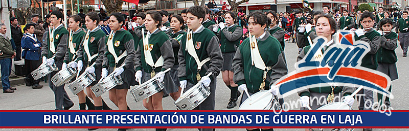 Pese a las amenazas de lluvia, el Encuentro de Bandas Escolares de Guerra se realizó en Laja la mañana del lunes 9 de septiembre, sin inconvenientes y con gran asistencia de público, siendo un anticipo del desfile del próximo día 18.