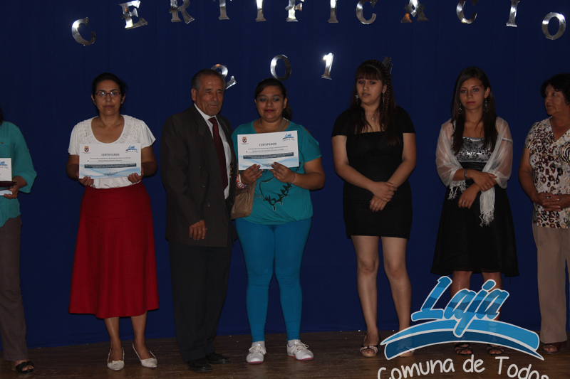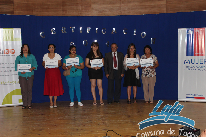 Este viernes 10 de enero se realizo la ceremonia de certificación, tanto del programa mujer trabajadora y jefa de hogar como de mujeres de distintos sectores de la comuna, que fueron capacitadas en Alfabetización Digital por funcionarias de la Biblioteca Municipal, cursos impartidos gracias a la municipalidad de laja y sus políticas de desarrollo y capacitación dirigido fundamentalmente a las mujeres, y donde también participaron varones.