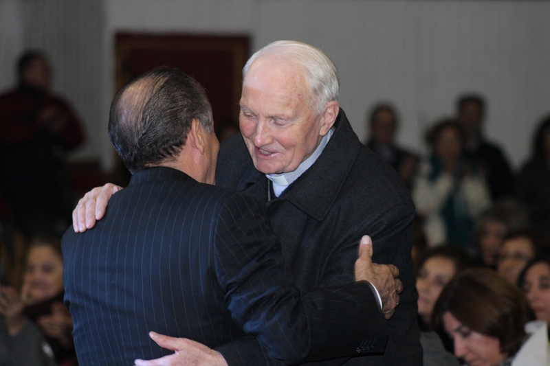 La ceremonia se efectuó en el gimnasio de la escuela José Abelardo Núñez, ante una multitud que quiso festejar con este querido sacerdote. El primero en hacer uso de la palabra fue el alcalde José Pinto quien se refirió a la persona del Padre Félix, destacando que es un sacerdote que trasciende al mundo católico, por ser de todos los Lajinos, alguien que se ha dedicado a servir al más desposeído y necesitado, más allá de la fe que puedan profesar, independiente de la posición social, económica, de ideologías políticas o credos religiosos, desde su primer día en esta tierra. Mismos motivos que llevó hace algunos años a que el concejo municipal decidiera poner su nombre a una transitada calle de la ciudad.