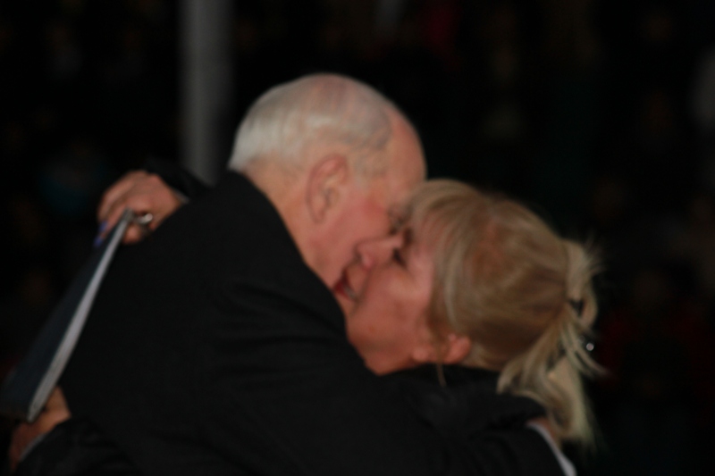 Al término de la ceremonia las asistentes se agolparon a su alrededor para saludarlo y abrazarlo, demostrándole su cariño y aprecio.