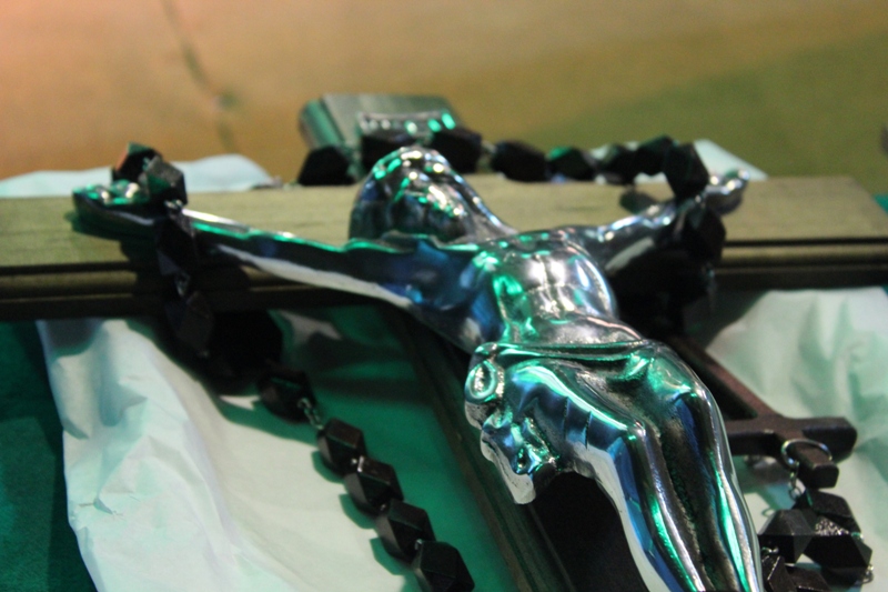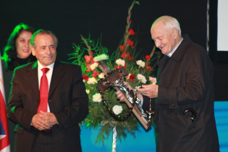 El alcalde José Pinto le entregó un obsequio de alto sentido religioso y espiritual a nombre de la comunidad Lajina, consistente en un crucifijo de madera con incrustaciones de plata y un rosario.