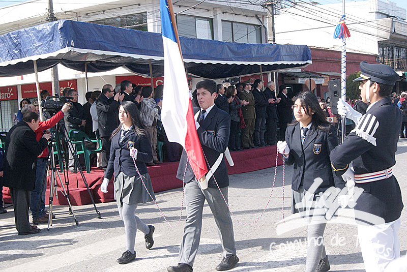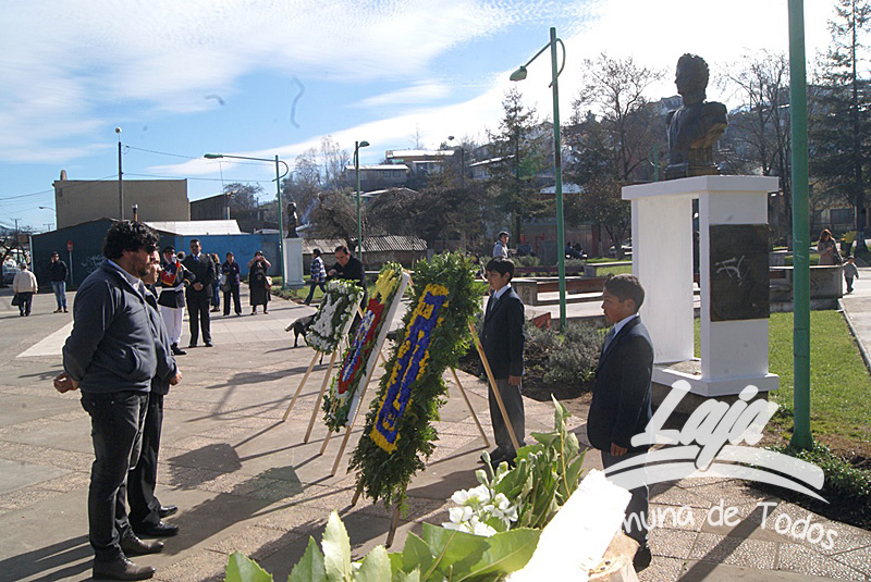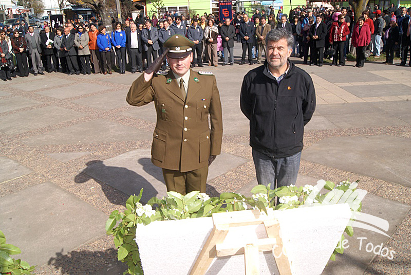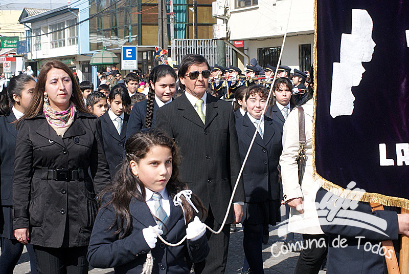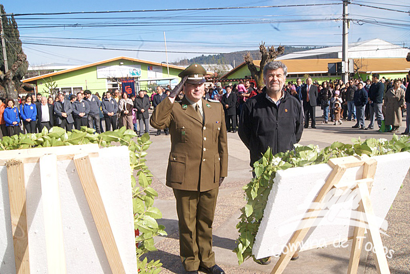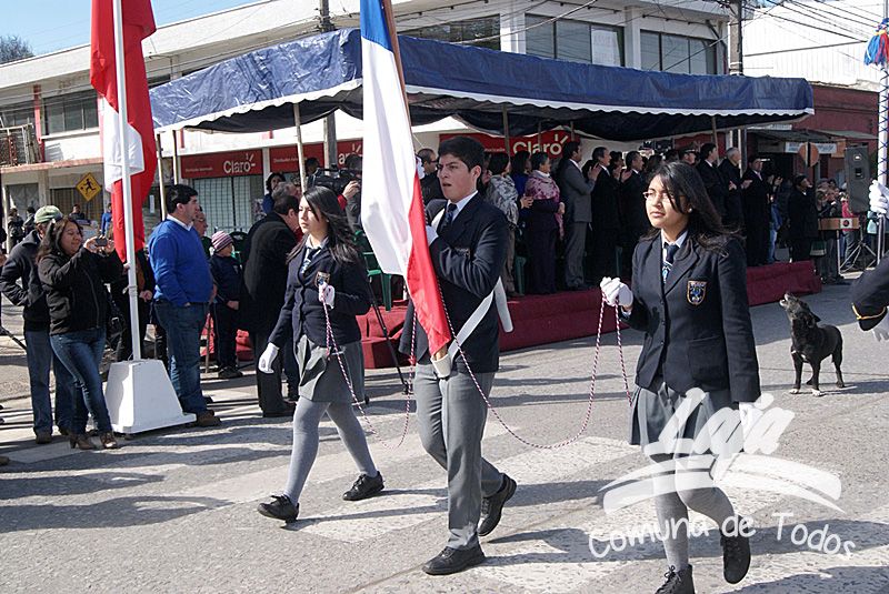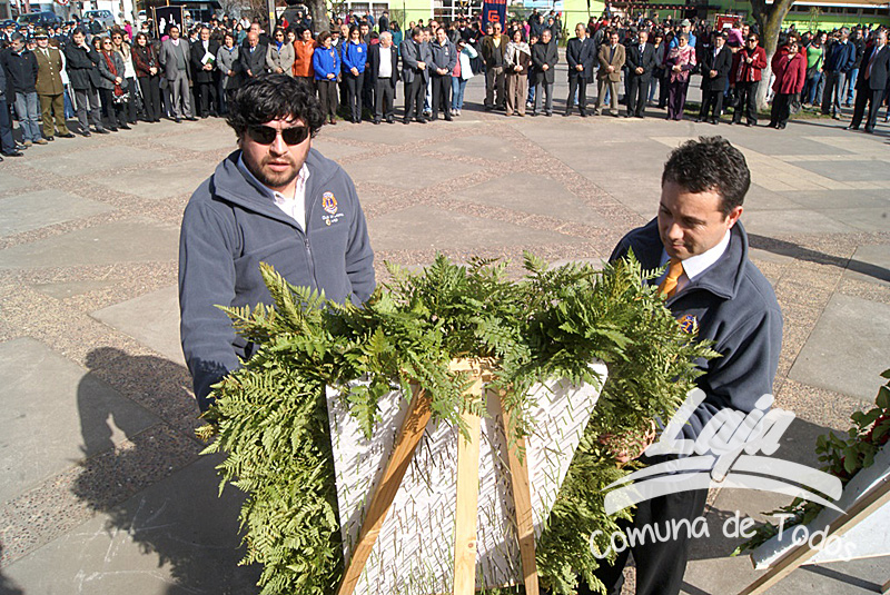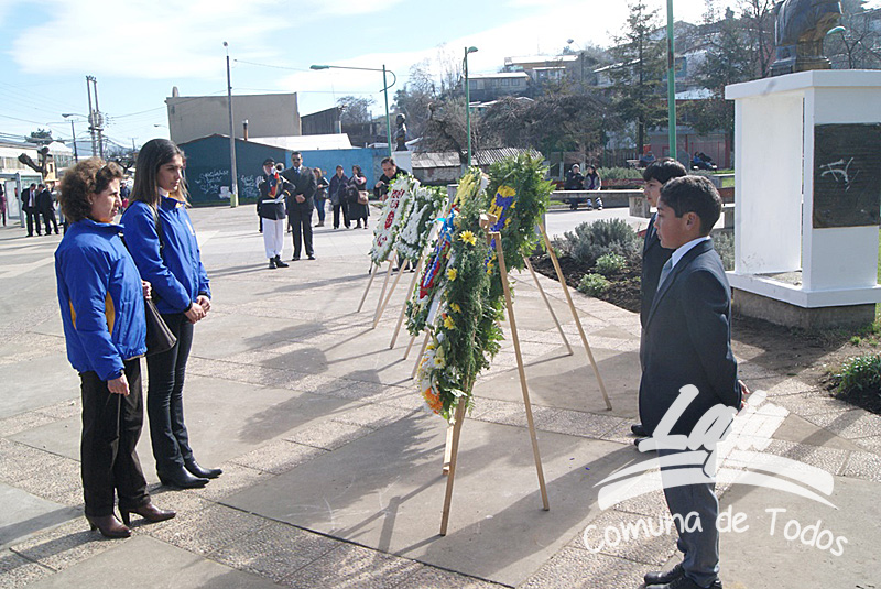 La ceremonia se inició con la postura de ofrendas florales a los pies del busto del Libertador O’Higgins por parte de representantes del Municipio, Carabineros, Rotary Club y Club de Leones. Posteriormente se efectuó un acto y desfile en avenida Balmaceda, actividad que este año le correspondió realizar a la escuela D-975, José Abelardo Núñez