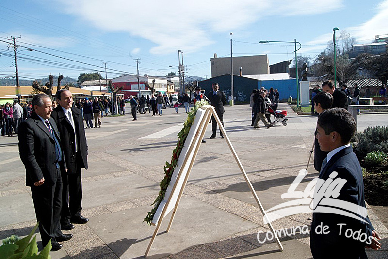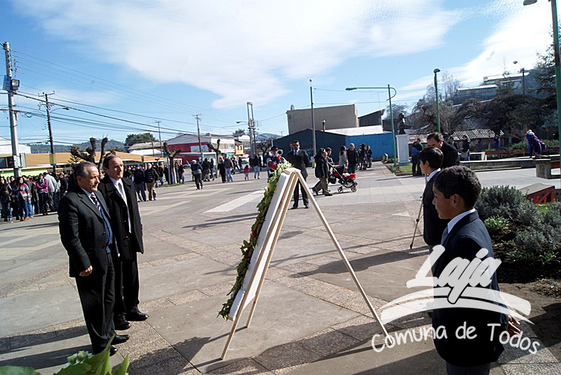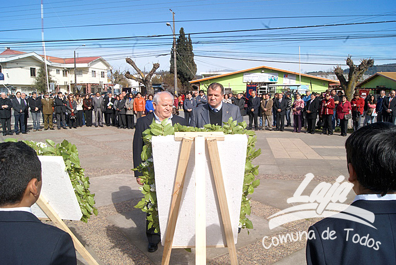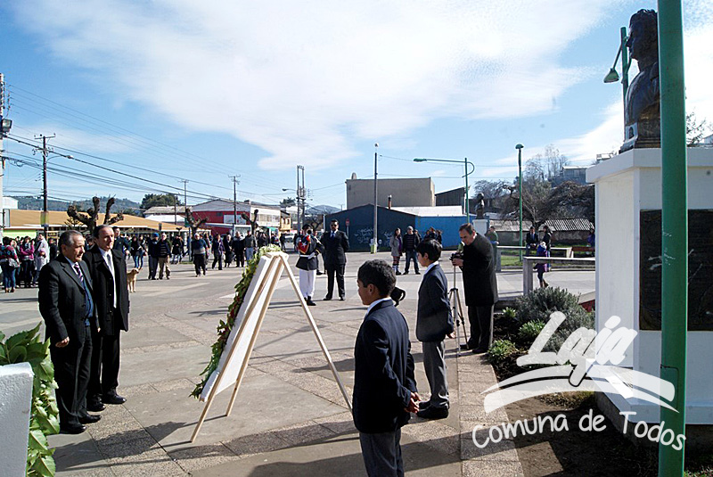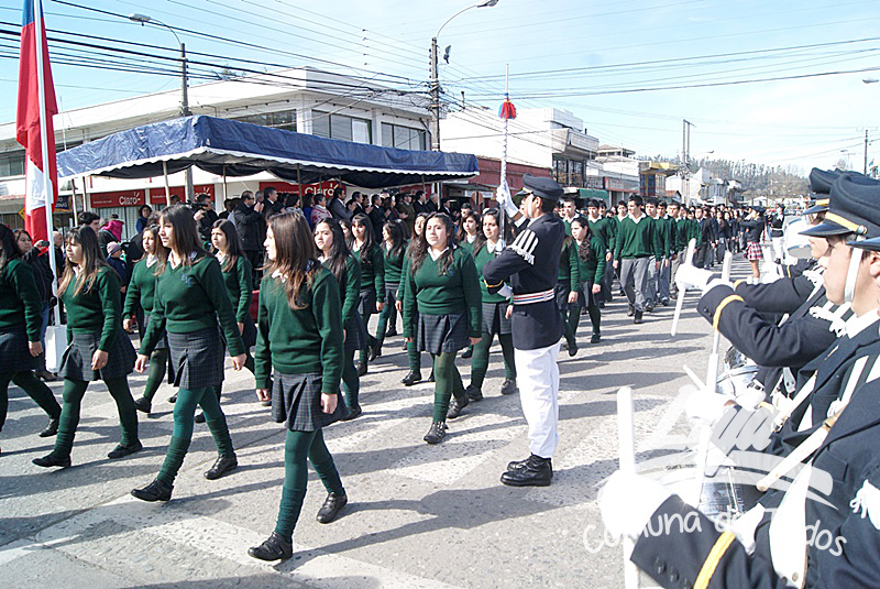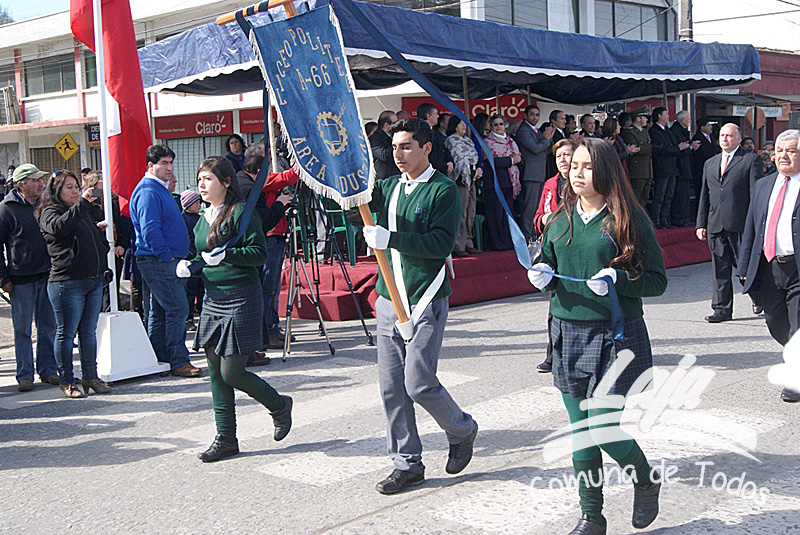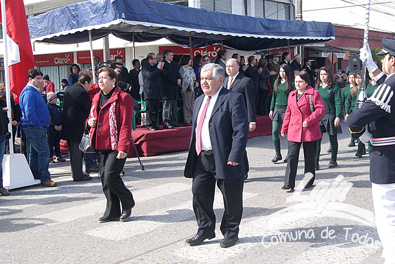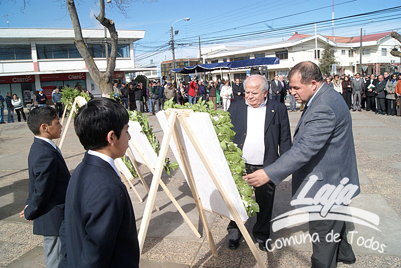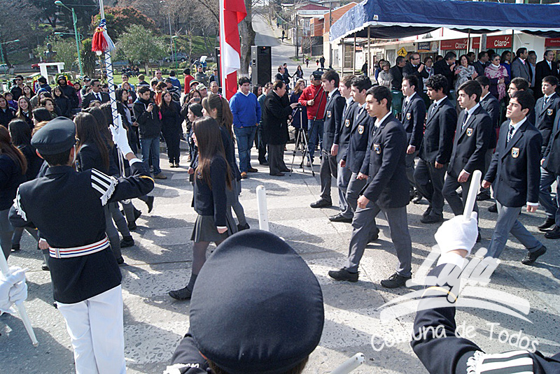 La ceremonia se inició con la postura de ofrendas florales a los pies del busto del Libertador O’Higgins por parte de representantes del Municipio, Carabineros, Rotary Club y Club de Leones. Posteriormente se efectuó un acto y desfile en avenida Balmaceda, actividad que este año le correspondió realizar a la escuela D-975, José Abelardo Núñez