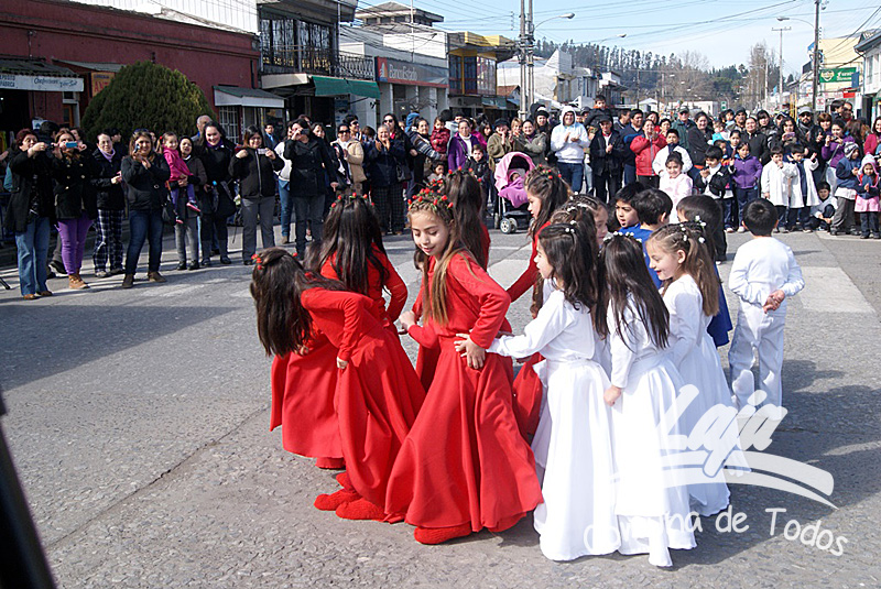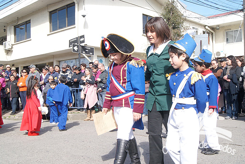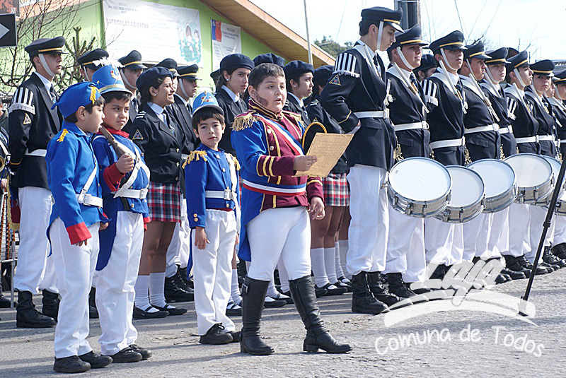 Alumnos de pre básica y del primer ciclo de esta escuela realizaron una alegoría artístico musical, representando la vida del prócer y su lucha por la independencia del país, lo que compatibilizaron con danzas de la época colonial, posterior a esto delegaciones de estudiantes de las diversas unidades educativas, municipales, particulares y particular subvencionadas, desfilaron frente a las autoridades comunales, encabezadas por el alcalde José Pinto Albornoz, Concejales, directores de escuelas, representantes de organizaciones sociales, empresas y el numeroso público que se congregó a ver el paso de los escolares, quienes marcharon al compás de marchas interpretadas por la Banda de Guerra del Centro Básico.