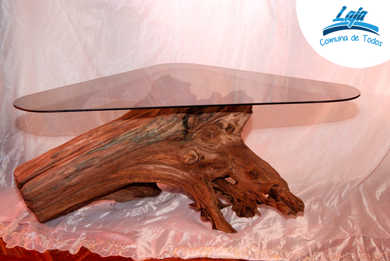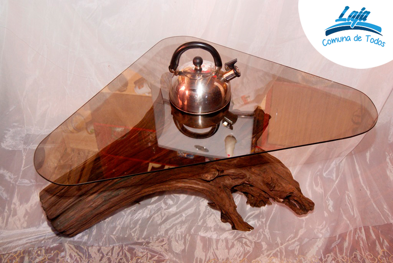 Otro arte o manualidad que este joven trabaja es el confeccionar mesas y lámparas de raíces de árboles, lo que él llama “mesas rusticas”, todas por cierto en maderas nativas. Estas las trae de apartados lugares, principalmente cordilleranos, que recorre y donde busca, escava, corta, para conseguir en muchos casos enormes piezas de madera y llegar con ellas, hasta lo que hoy es su taller-hogar en una parcela en el ingreso norte de Laja, donde rodeado de árboles nativos y bonsáis de todos tipos y portes, los que se crían al aire libre, dice él que para hacerlos más fuertes, realiza sus manualidades en las pesadas y enormes madera, para convertirlas en hermosas bases de mesas de centro y comedor.
