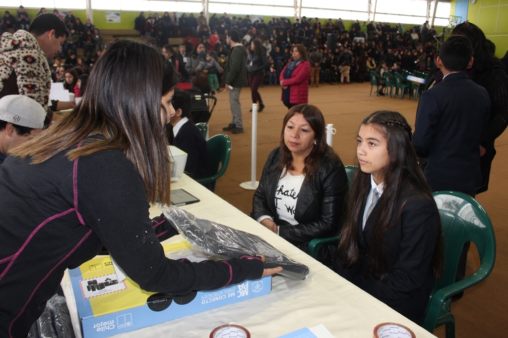 Desde muy temprano comenzaron a llegar los alumnos, acompañados de sus apoderados, hasta el gimnasio municipal del liceo A-66. En el lugar, funcionarios de la Junta Nacional de Auxilio Escolar y Becas aguardaban para comenzar con la entrega de los 296 computadores a los jóvenes estudiantes seleccionados: 268 pertenecientes a establecimientos municipales y 28 a subvencionados.