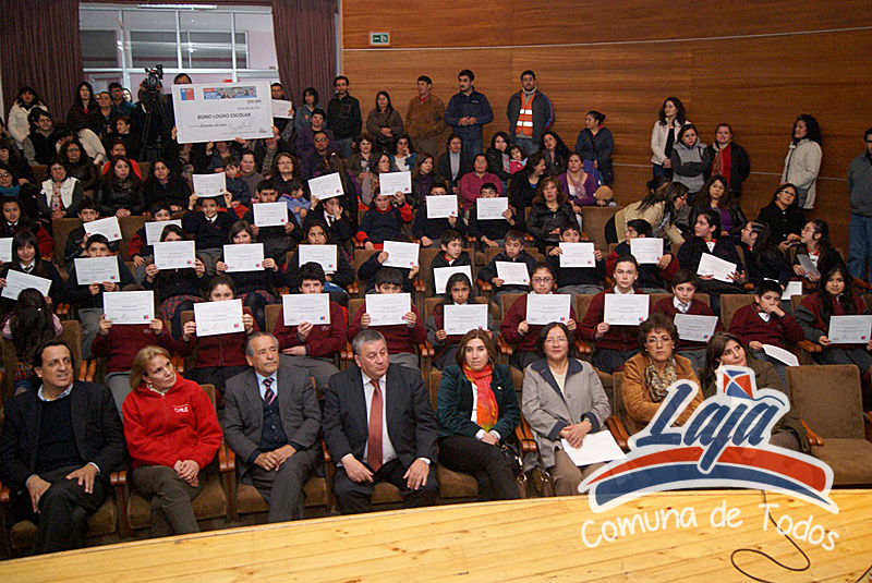En Laja se entregó el pasado miércoles 21 el bono Escolar a estudiantes de diferentes establecimientos educacionales. En la actividad estuvieron presentes la Gobernadora de la Provincia del Bio bío María Carolina Ríos, la Seremi de Desarrollo Social Claudia Hurtado, el Senador Víctor Pérez, el diputado Joel Rosales, además del alcalde José Pinto, concejales, directores de establecimientos y 70 estudiantes quienes junto a sus padres, recibieron en forma simbólica y representando a los 328 beneficiados de la comuna sus certificados que los acreditan como tales.