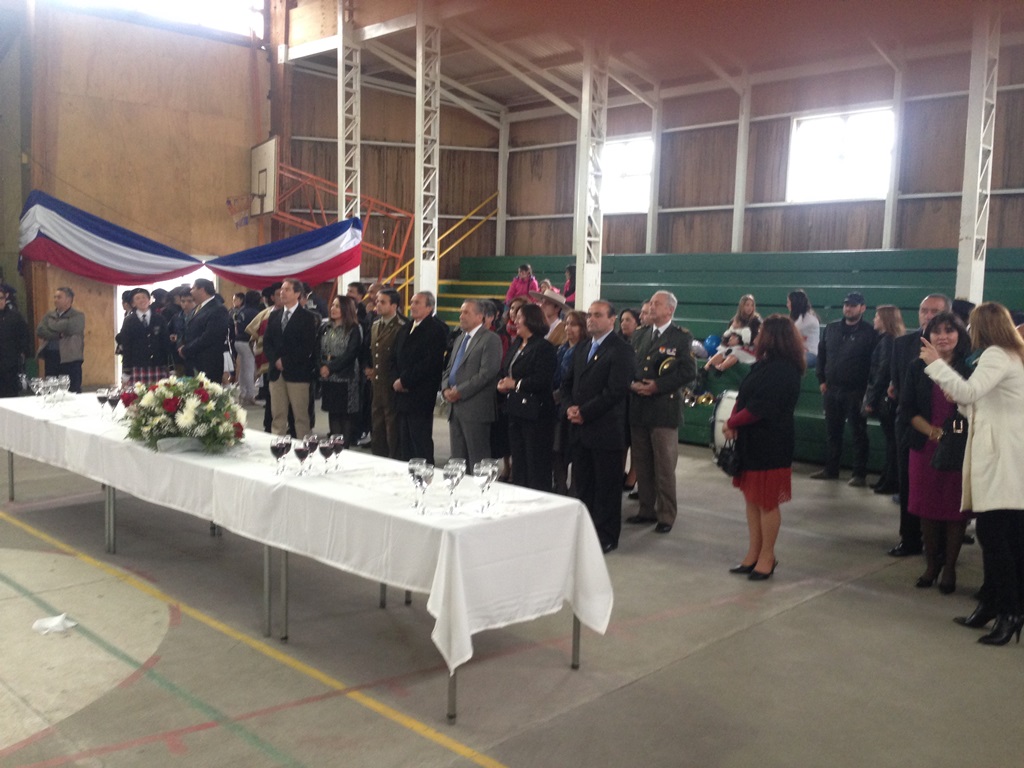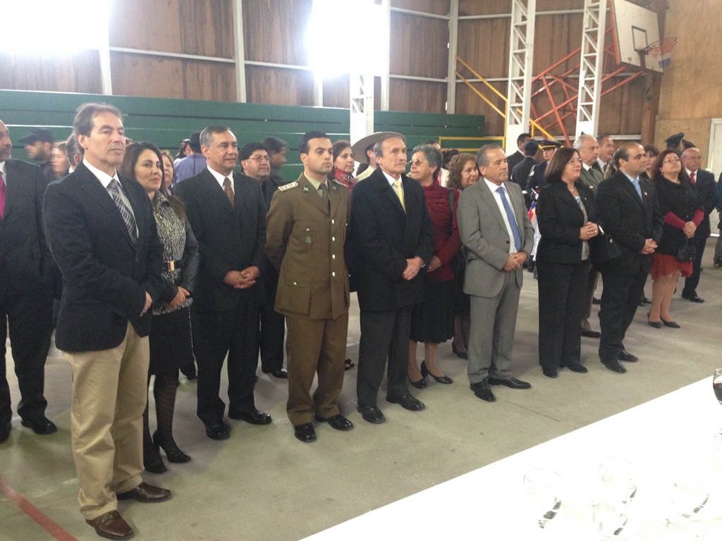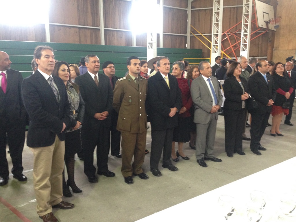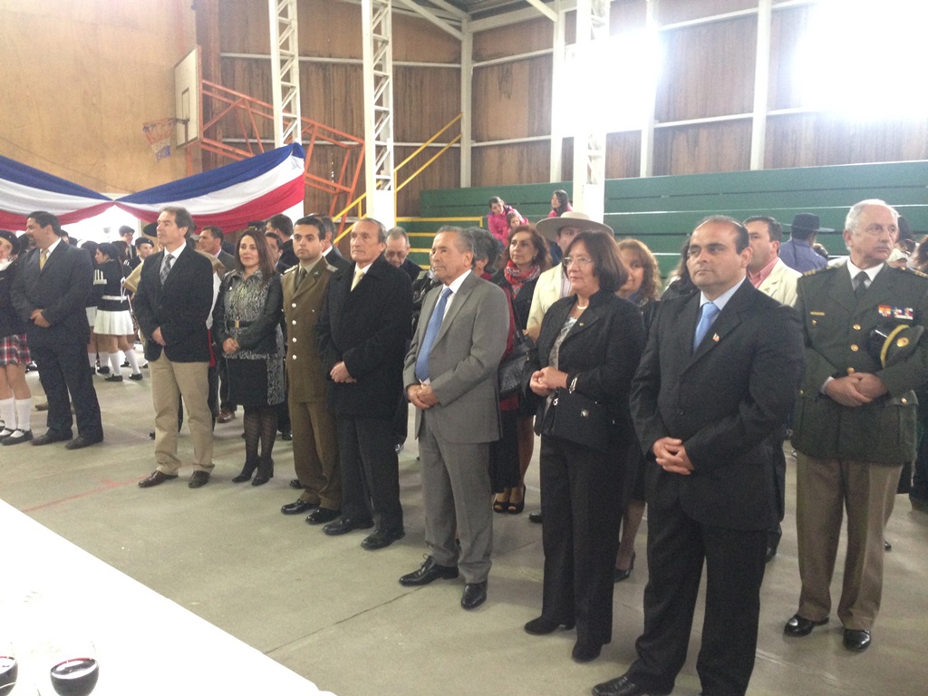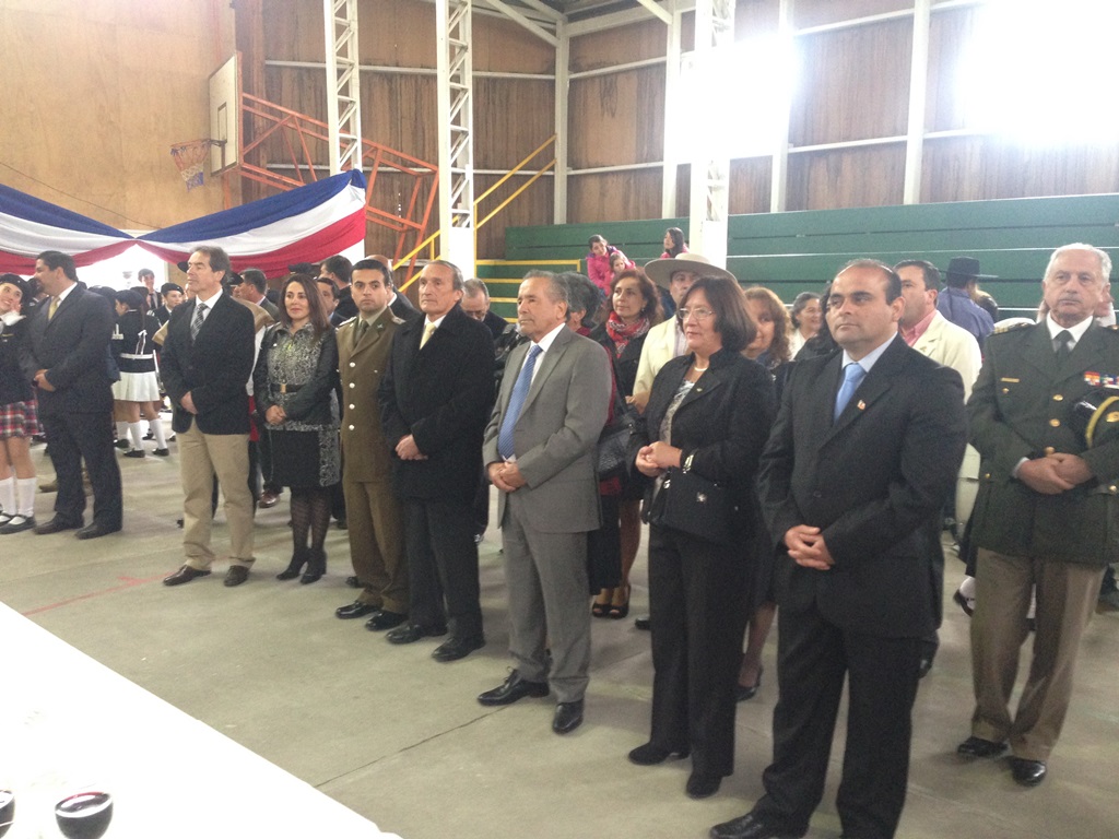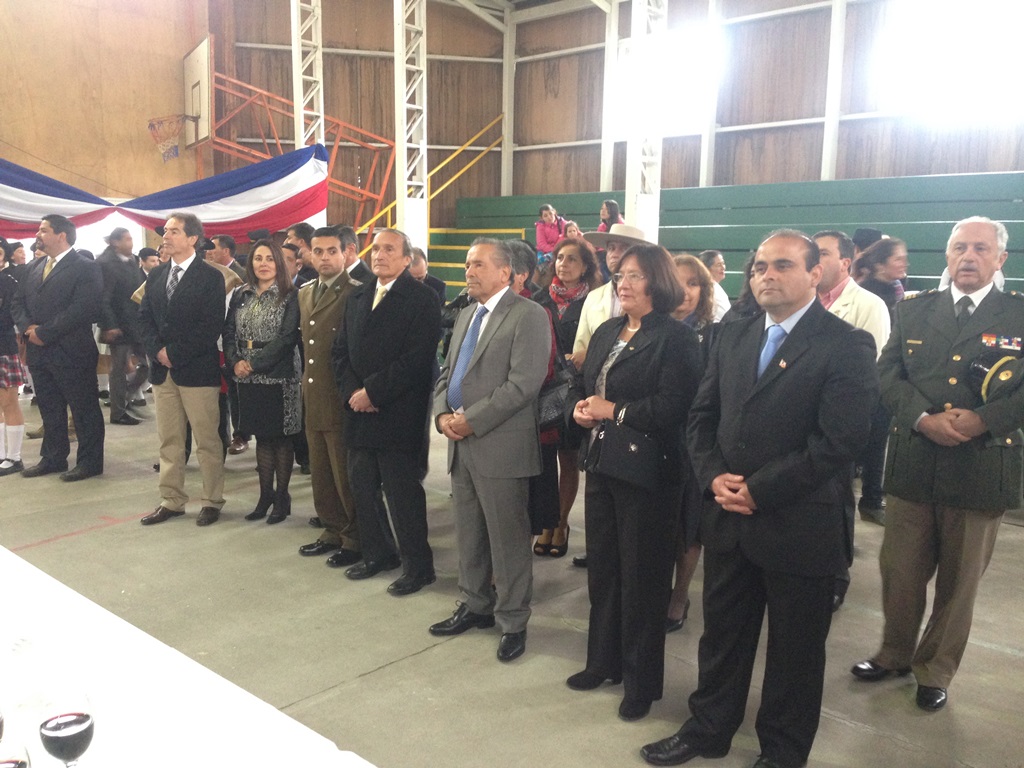 El alcalde José Pinto Albornoz, su cuerpo de concejales, directivos educacionales y municipales, representantes eclesiásticos, de empresas e instituciones, agrupaciones sociales y deportivas se trasladaron hasta el gimnasio de la escuela José Abelardo Núñez para así saludar a la patria.
