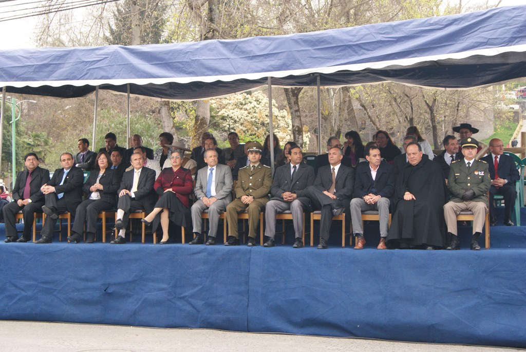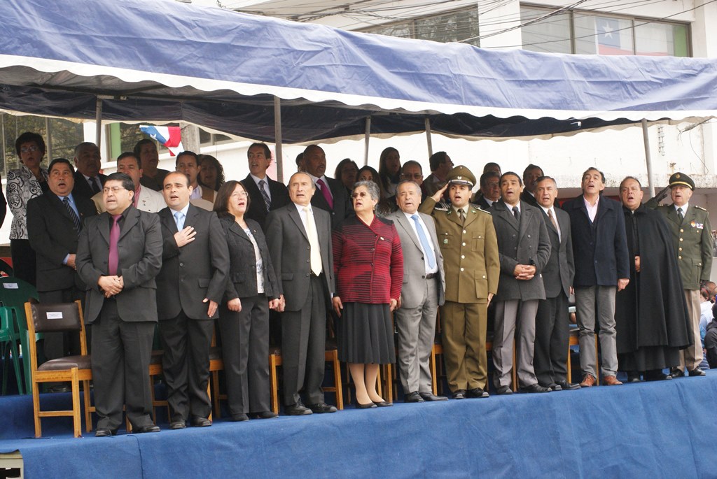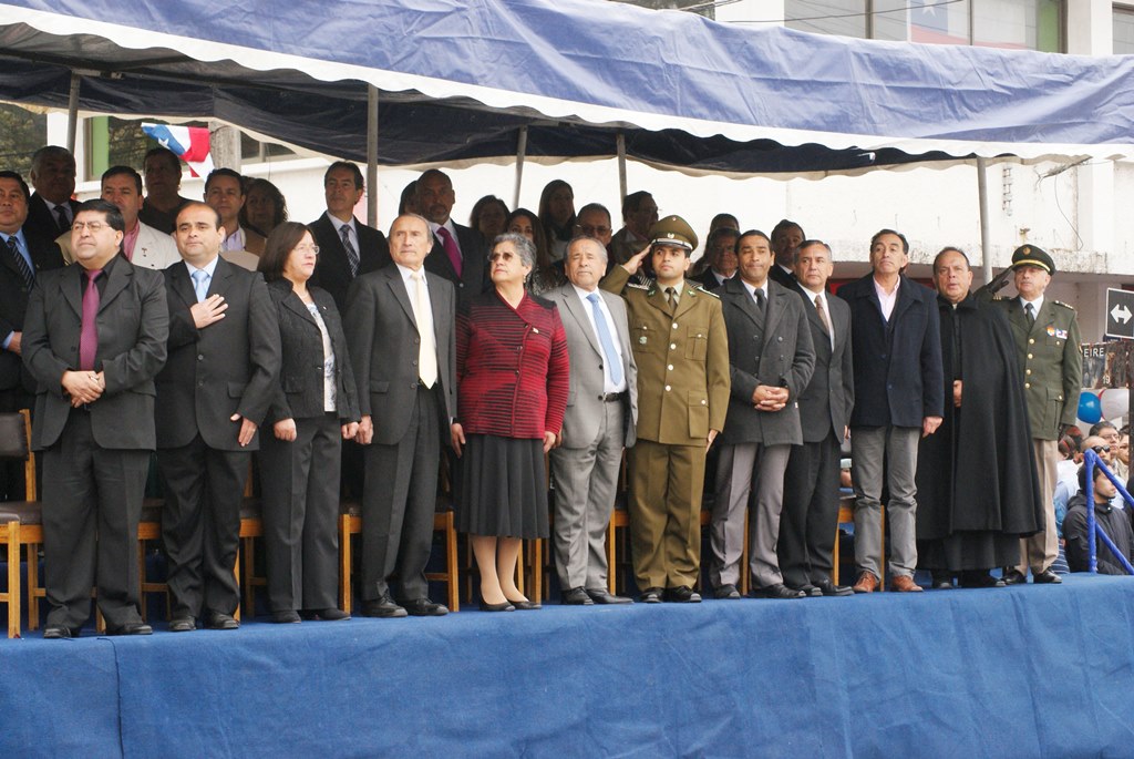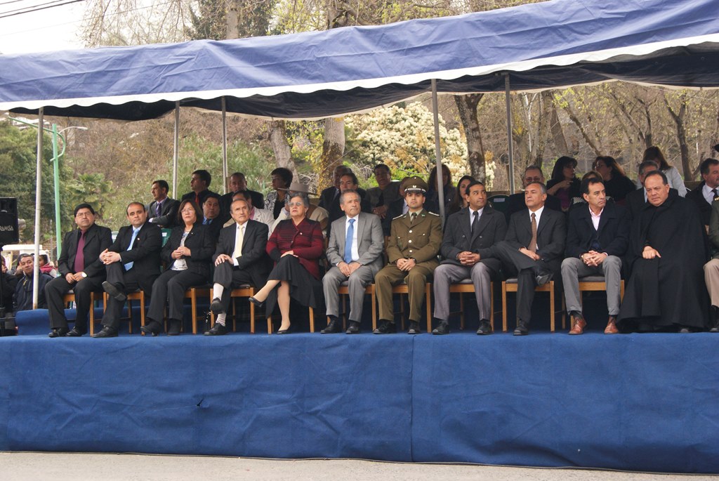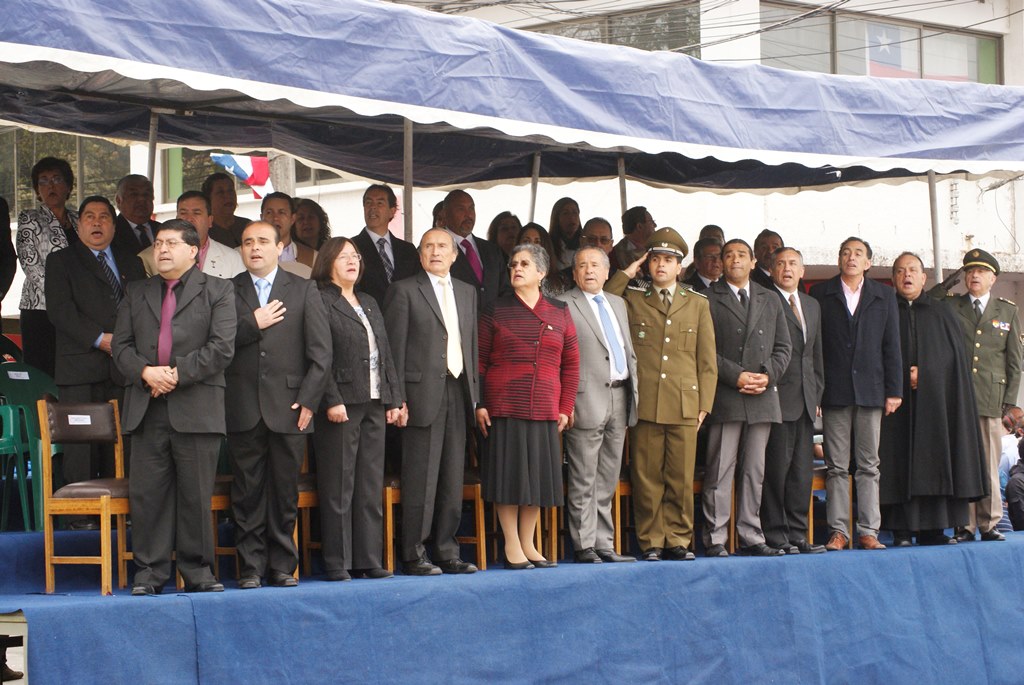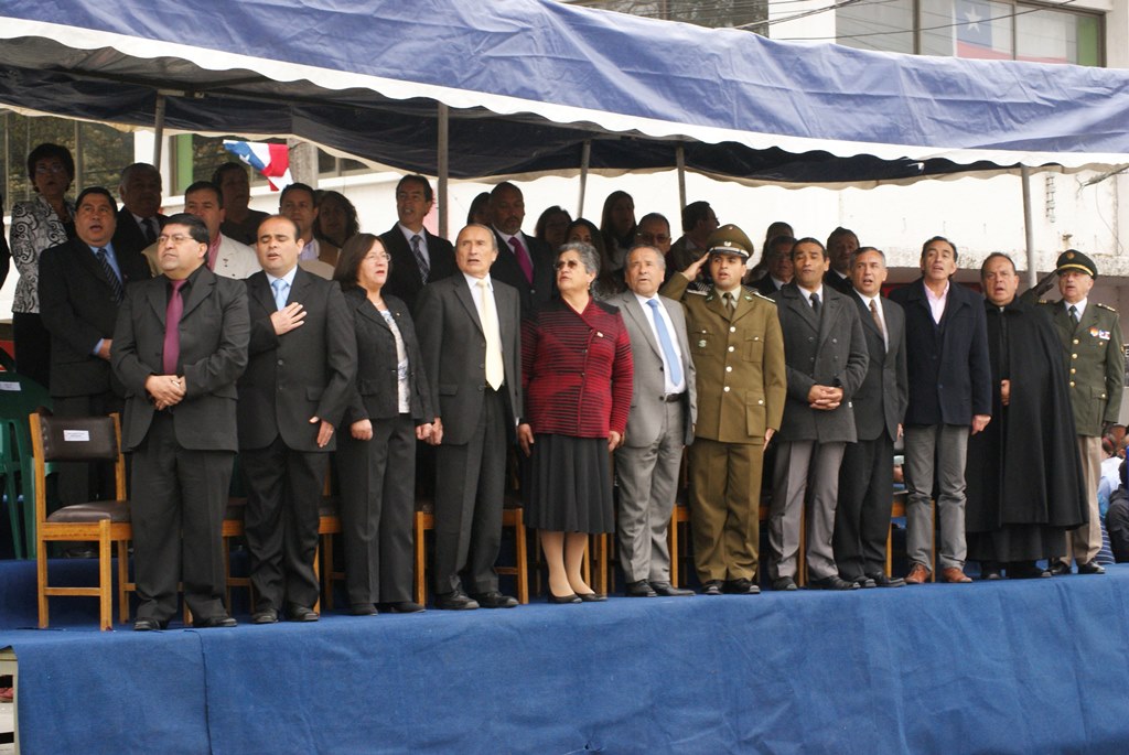 El alcalde José Pinto Albornoz, su cuerpo de concejales, directivos educacionales y municipales, representantes eclesiásticos, de empresas e instituciones, agrupaciones sociales y deportivas se trasladaron hasta el gimnasio de la escuela José Abelardo Núñez para así saludar a la patria.