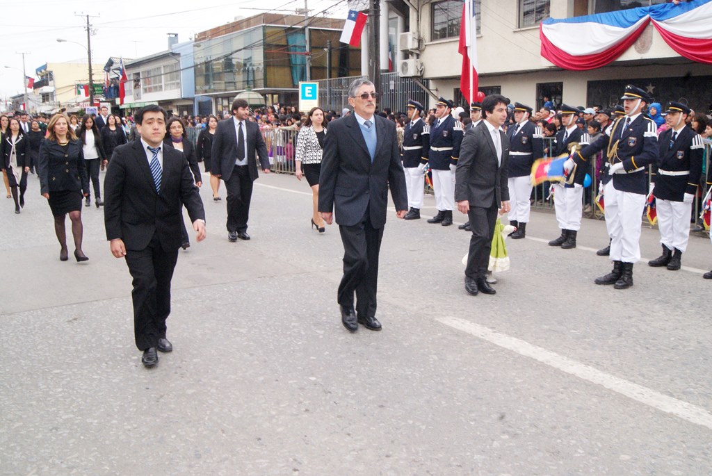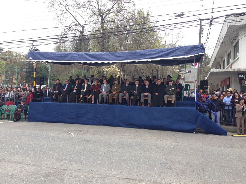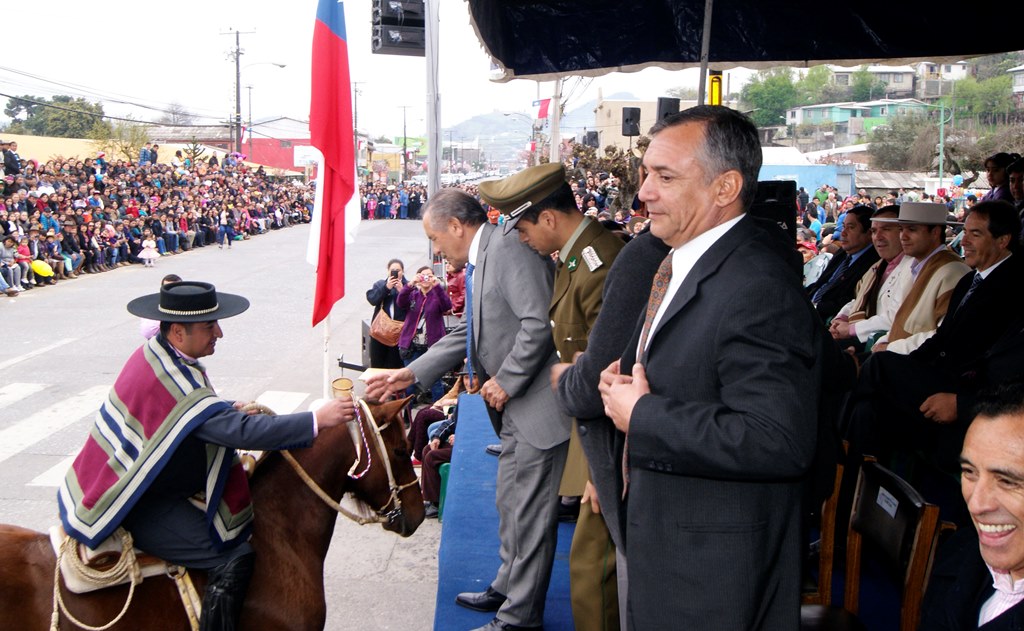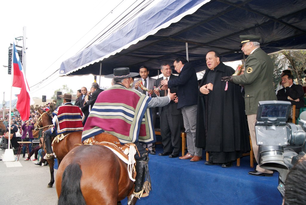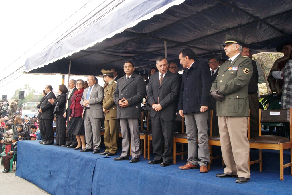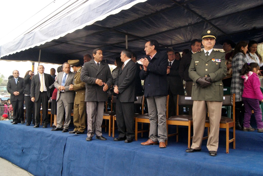 El alcalde José Pinto Albornoz, su cuerpo de concejales, directivos educacionales y municipales, representantes eclesiásticos, de empresas e instituciones, agrupaciones sociales y deportivas se trasladaron hasta el gimnasio de la escuela José Abelardo Núñez para así saludar a la patria.
