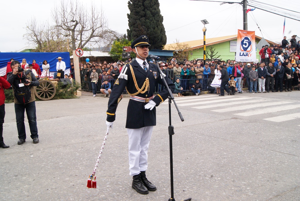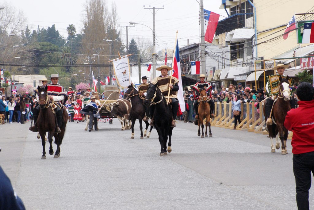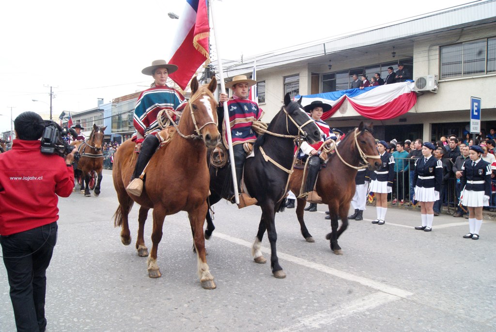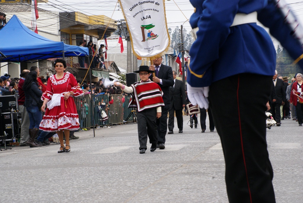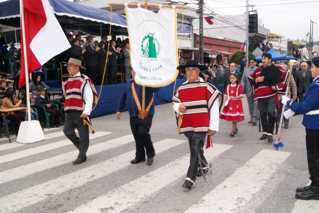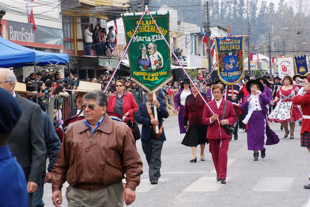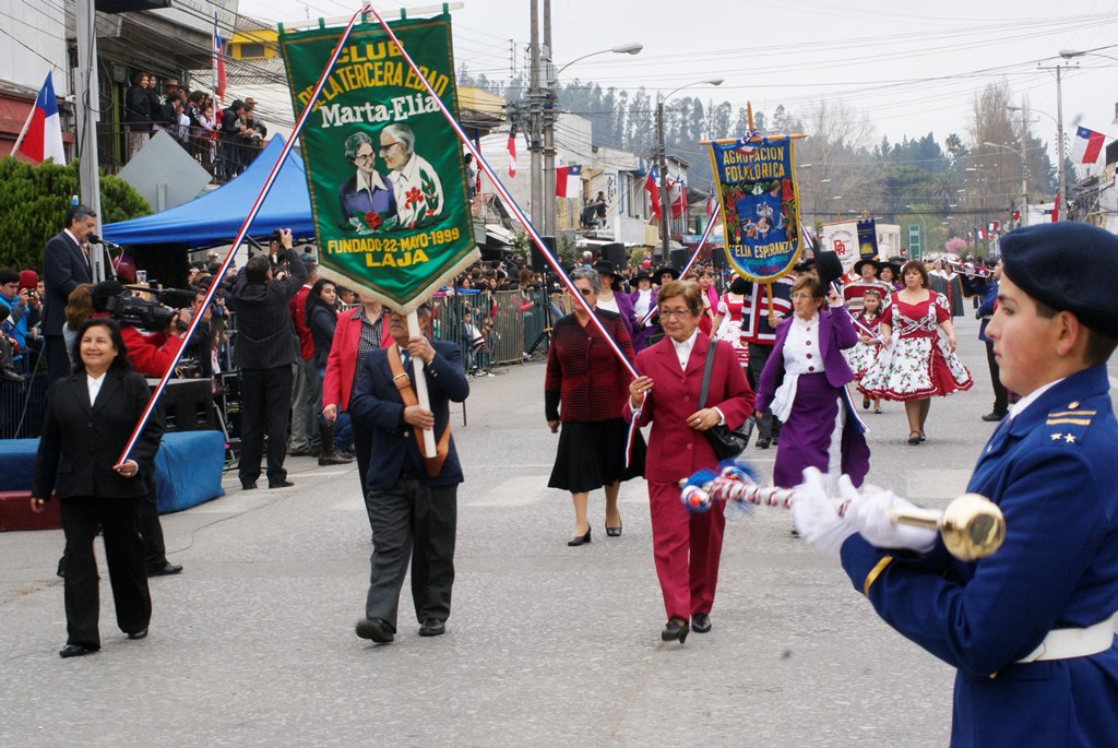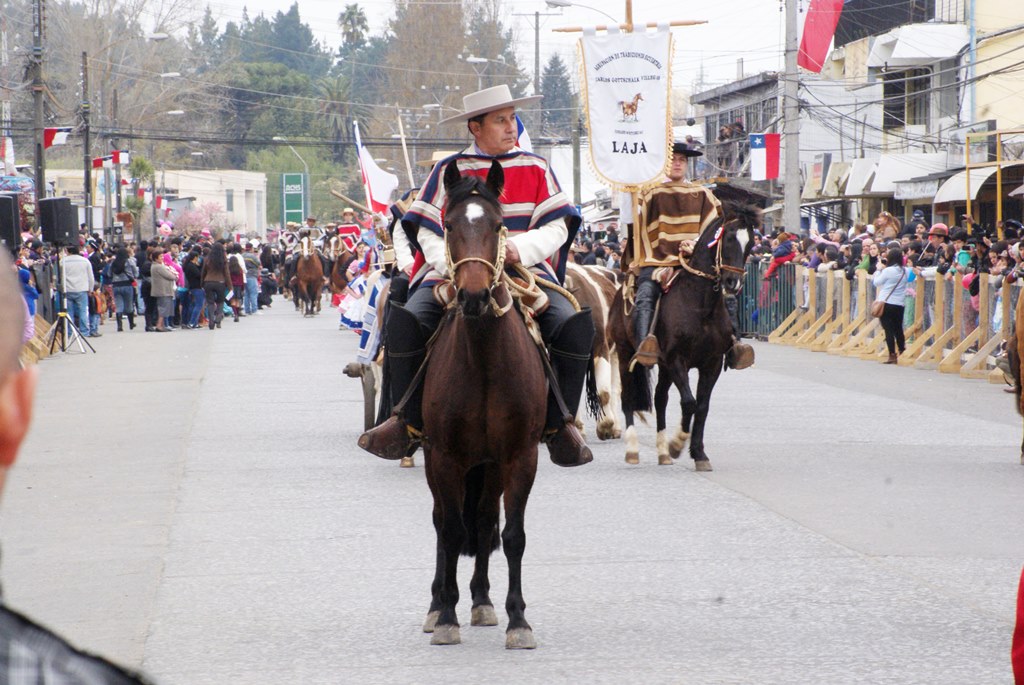 Fueron las bandas de guerra de la Escuela Andrés Alcázar y Liceo Héroes de la Concepción, quienes con sus sones marcaron el paso de las diferentes unidades educativas, las que encabezadas por sus directivos y docentes desfilaron impecables frente a las autoridades y la comunidad; también se sumaron al desfile y como es habitual, diferentes organizaciones sociales y comunitarias como clubes de adultos mayores y la Unión Comunal de Juntas de Vecinos, damas de Rojo, agrupaciones deportivas y bomberos. Al cierre del desfile pasaron el Club de Huasos de Laja, Los Amigos del Caballo de Santa Elena y la Agrupación Ecuestre Carlos Gottschalk; “chinas y huasos” acapararon las miradas por sus coloridas y elegantes vestimentas y la hermosura de sus bestias, fieles ejemplos de la raza del Caballo Chileno.