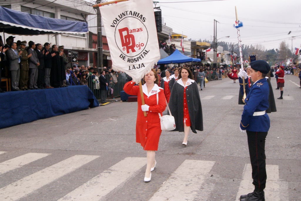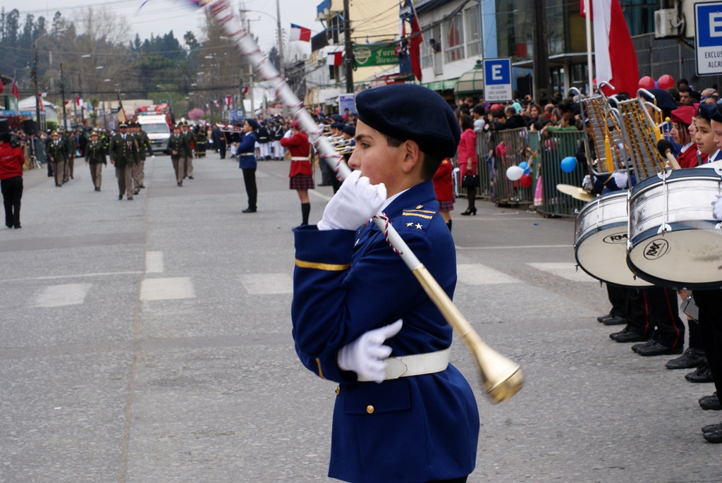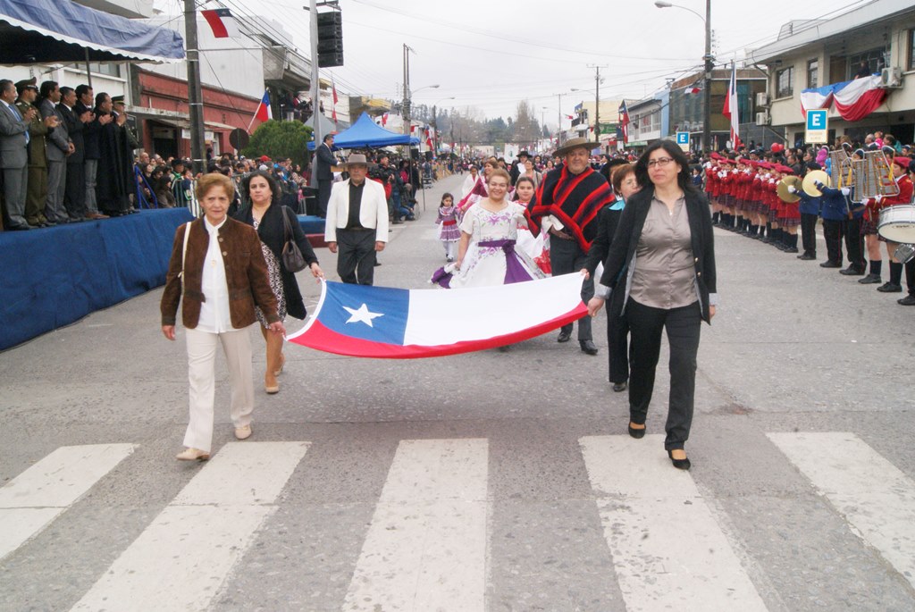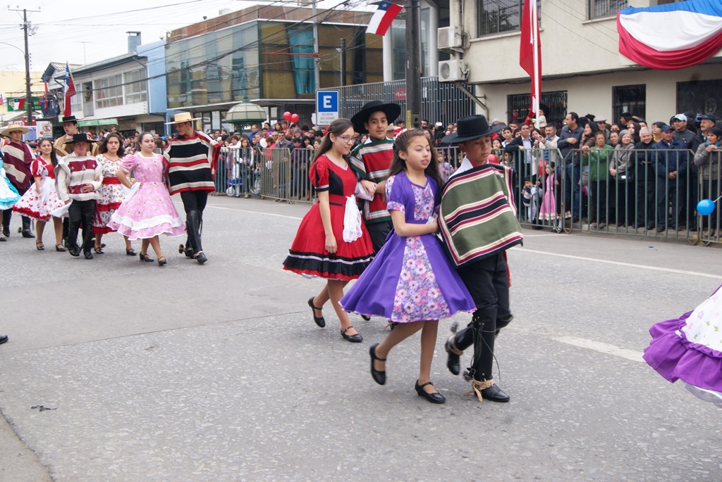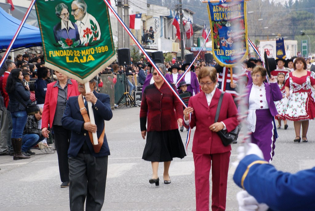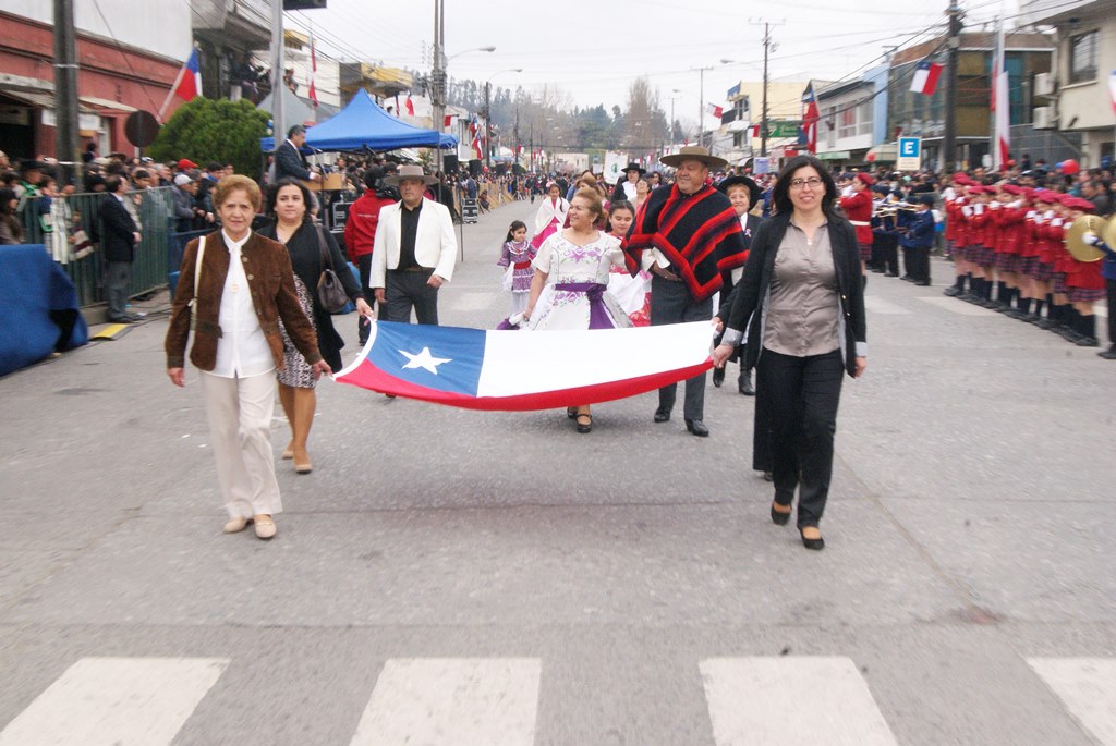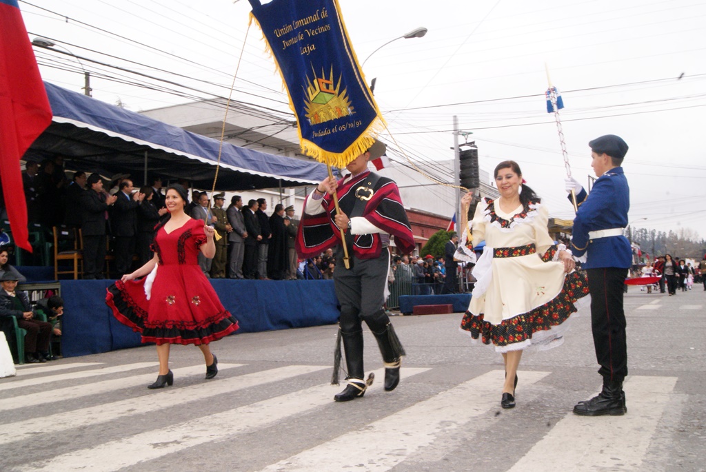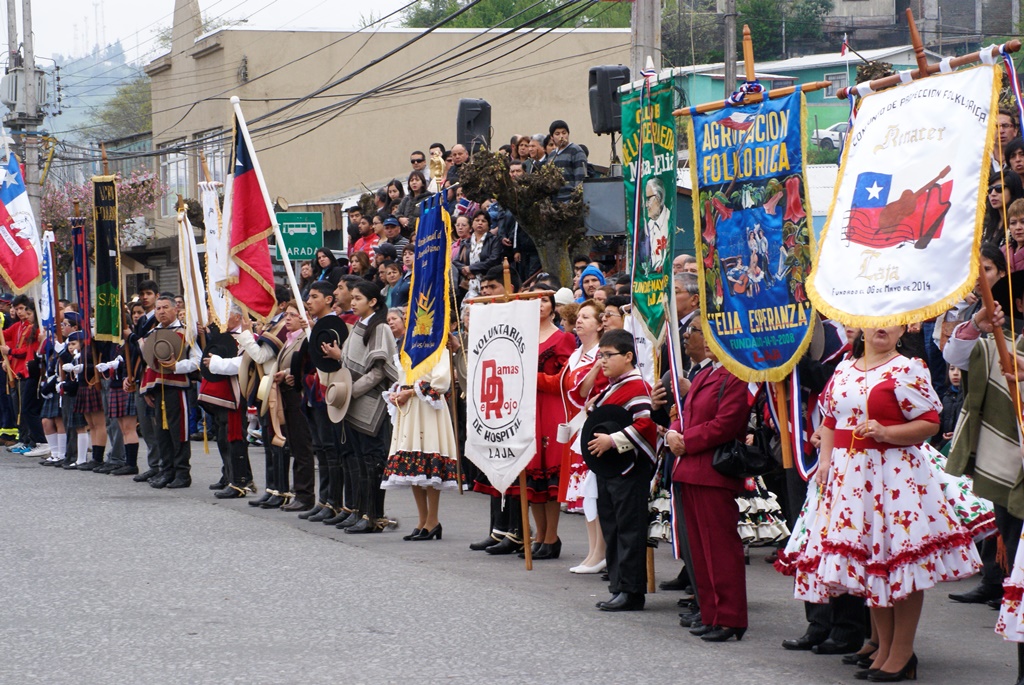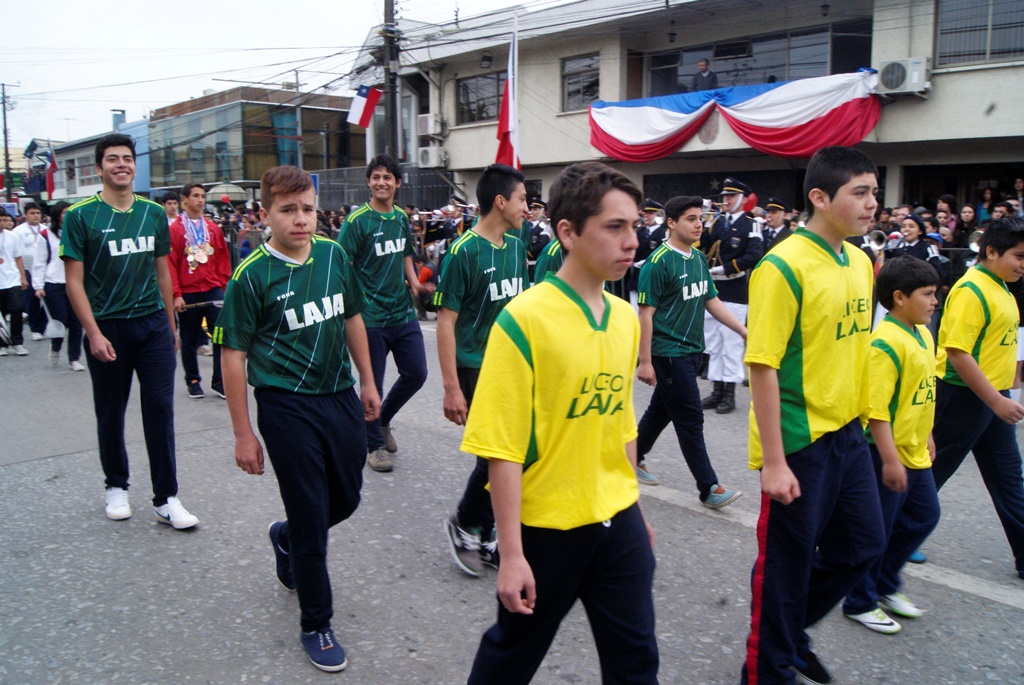 Fueron las bandas de guerra de la Escuela Andrés Alcázar y Liceo Héroes de la Concepción, quienes con sus sones marcaron el paso de las diferentes unidades educativas, las que encabezadas por sus directivos y docentes desfilaron impecables frente a las autoridades y la comunidad; también se sumaron al desfile y como es habitual, diferentes organizaciones sociales y comunitarias como clubes de adultos mayores y la Unión Comunal de Juntas de Vecinos, damas de Rojo, agrupaciones deportivas y bomberos. Al cierre del desfile pasaron el Club de Huasos de Laja, Los Amigos del Caballo de Santa Elena y la Agrupación Ecuestre Carlos Gottschalk; “chinas y huasos” acapararon las miradas por sus coloridas y elegantes vestimentas y la hermosura de sus bestias, fieles ejemplos de la raza del Caballo Chileno.