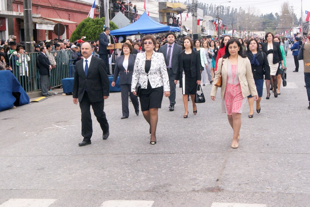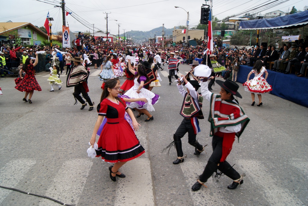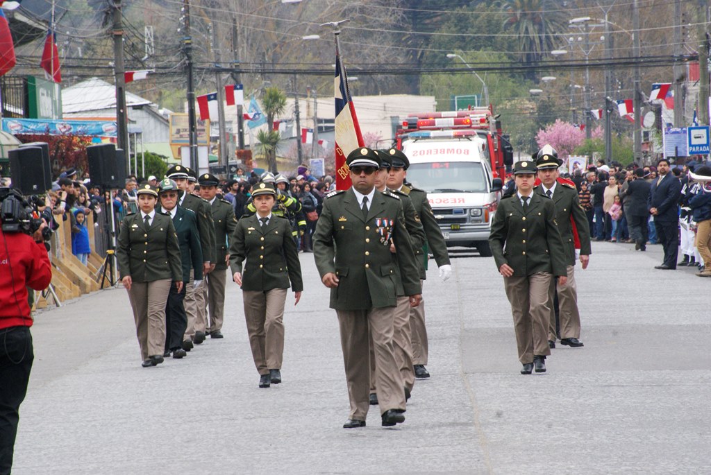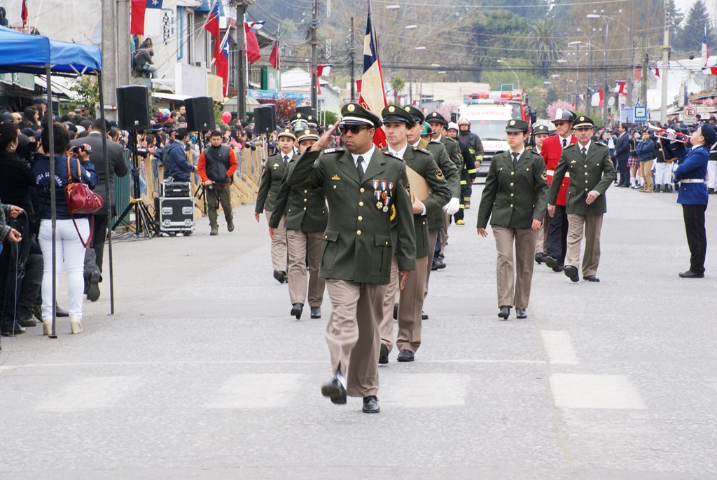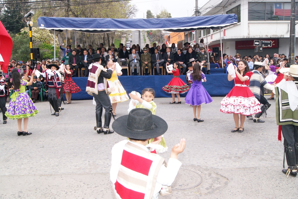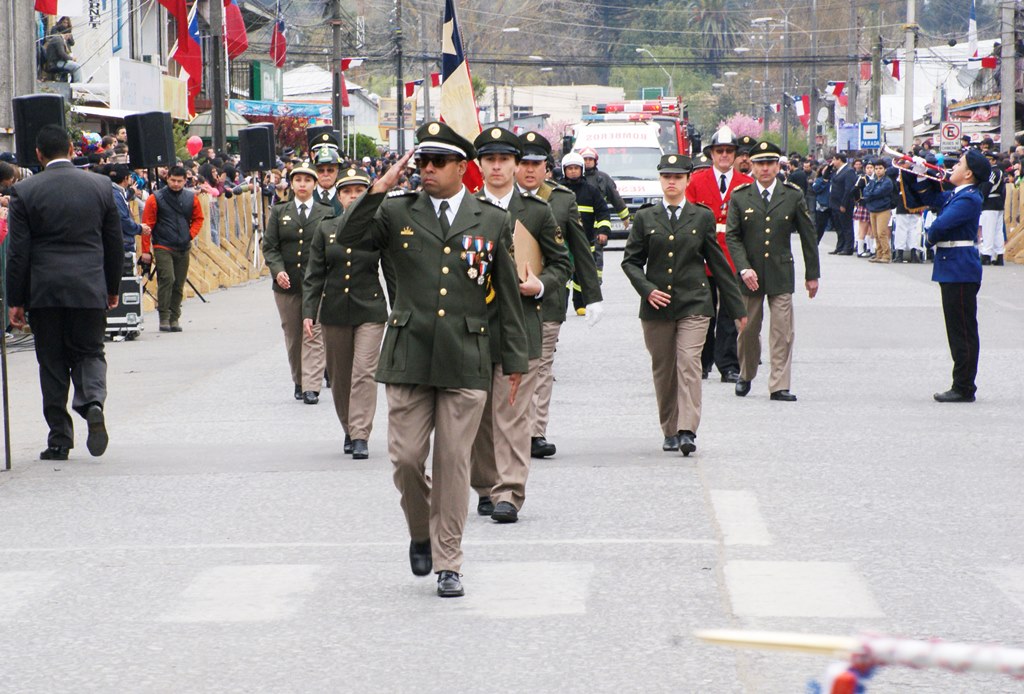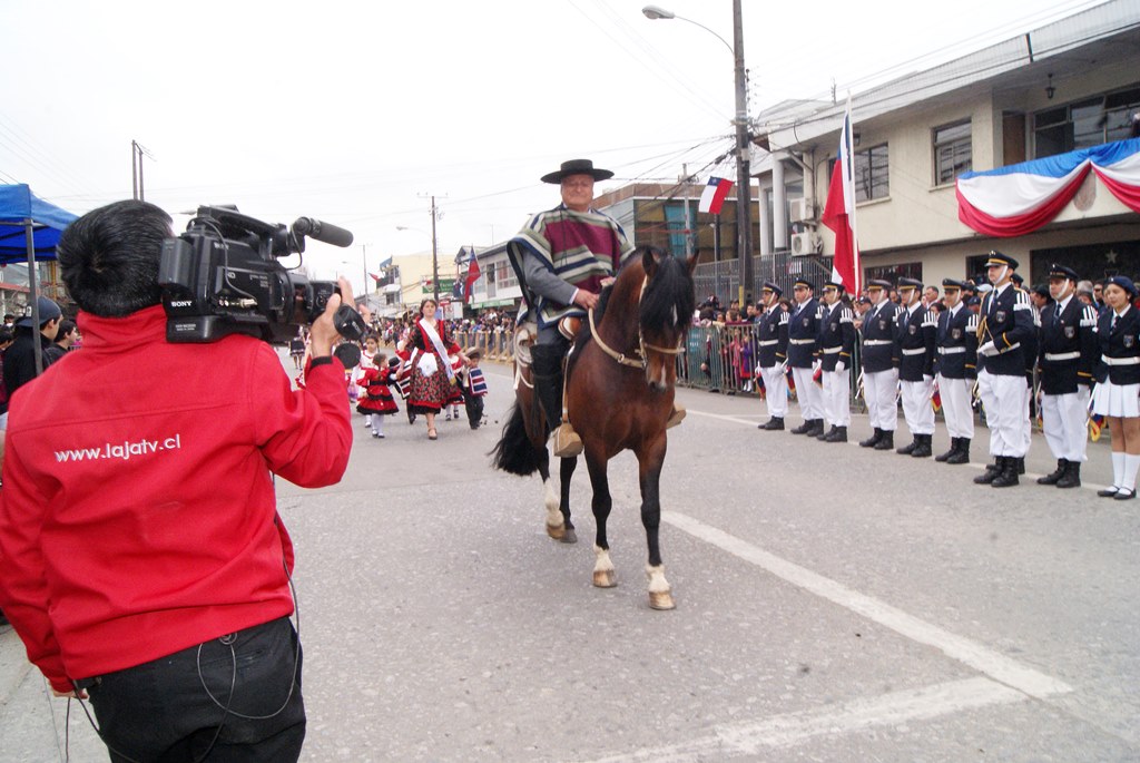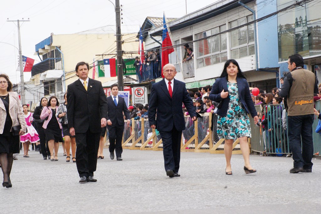 Fueron las bandas de guerra de la Escuela Andrés Alcázar y Liceo Héroes de la Concepción, quienes con sus sones marcaron el paso de las diferentes unidades educativas, las que encabezadas por sus directivos y docentes desfilaron impecables frente a las autoridades y la comunidad; también se sumaron al desfile y como es habitual, diferentes organizaciones sociales y comunitarias como clubes de adultos mayores y la Unión Comunal de Juntas de Vecinos, damas de Rojo, agrupaciones deportivas y bomberos. Al cierre del desfile pasaron el Club de Huasos de Laja, Los Amigos del Caballo de Santa Elena y la Agrupación Ecuestre Carlos Gottschalk; “chinas y huasos” acapararon las miradas por sus coloridas y elegantes vestimentas y la hermosura de sus bestias, fieles ejemplos de la raza del Caballo Chileno.