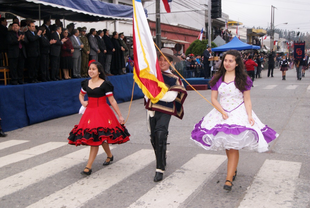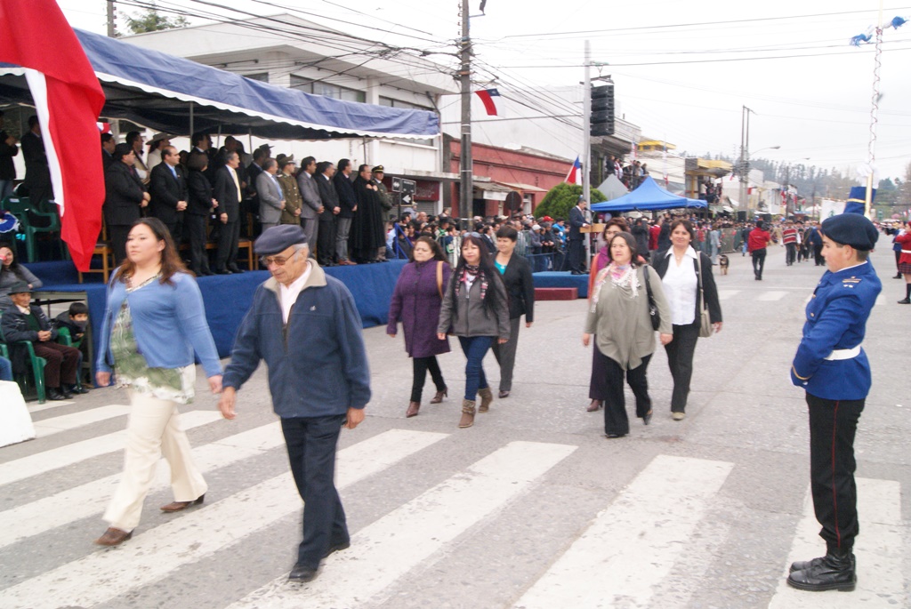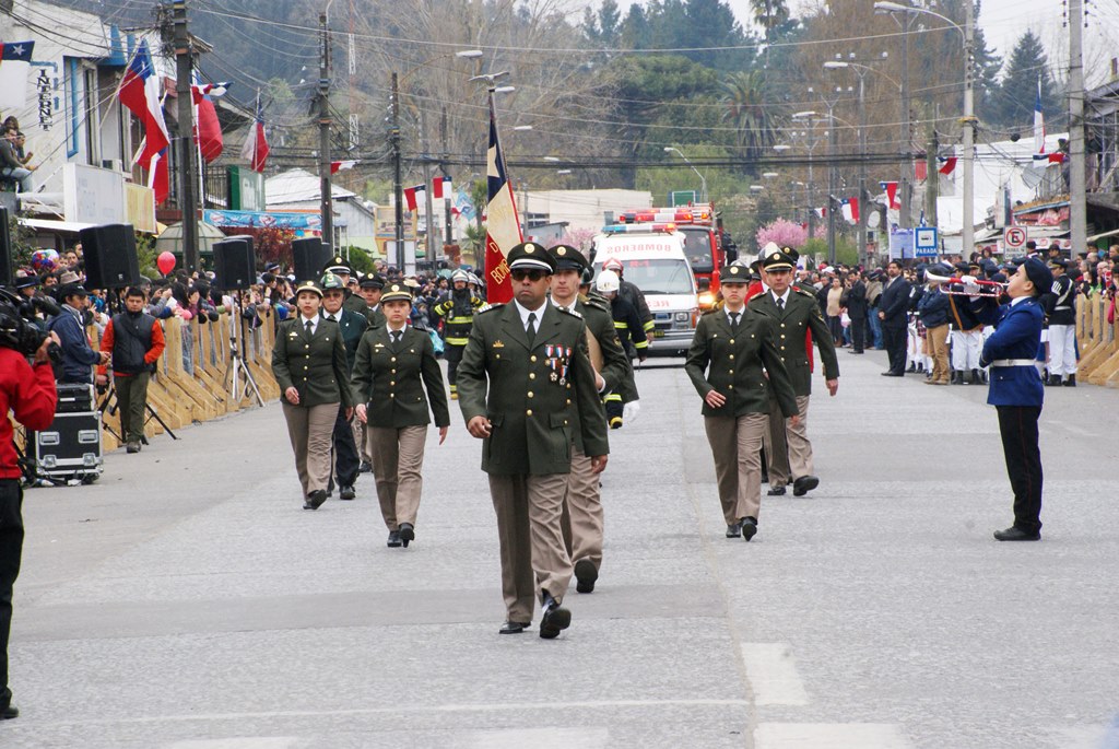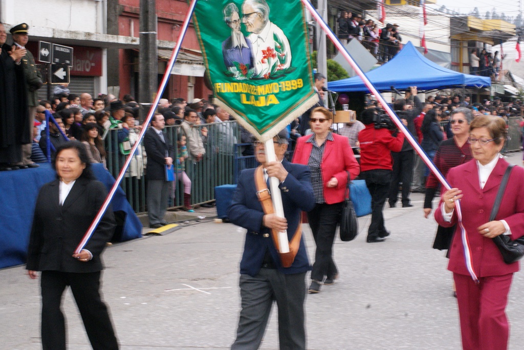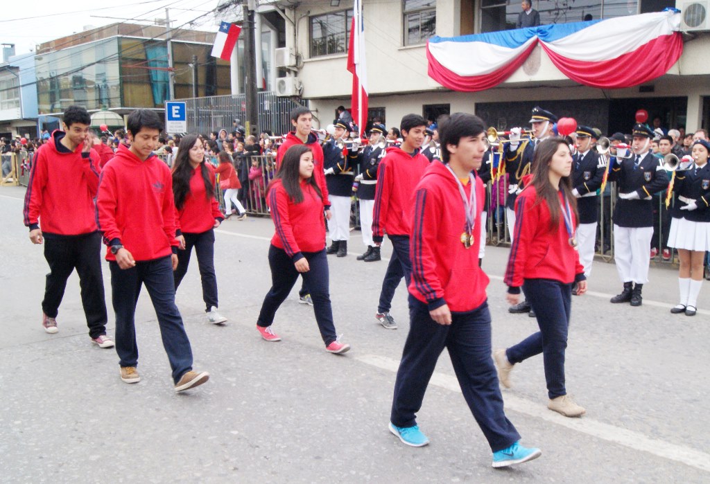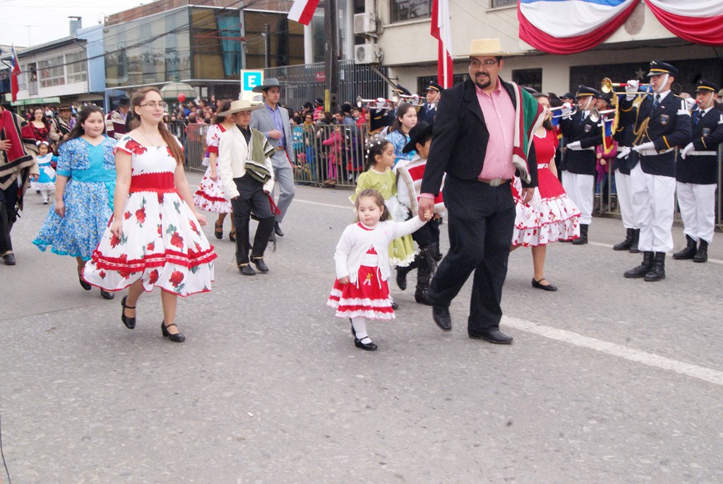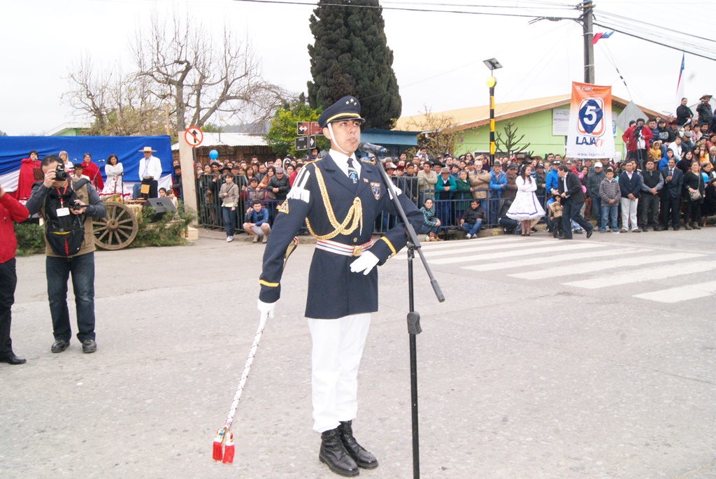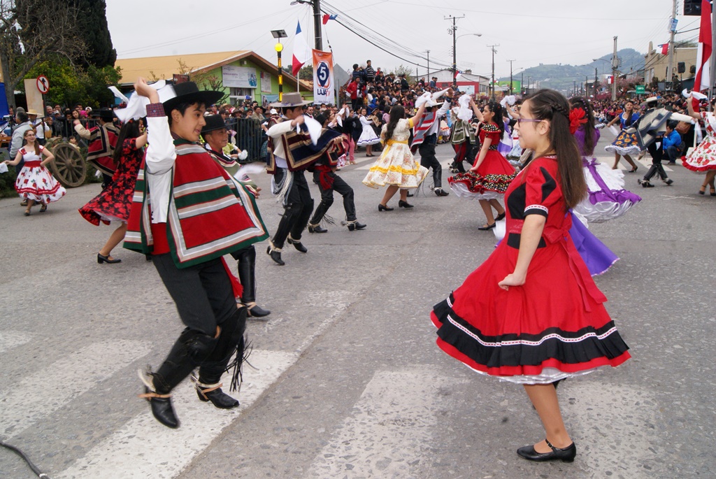 Fueron las bandas de guerra de la Escuela Andrés Alcázar y Liceo Héroes de la Concepción, quienes con sus sones marcaron el paso de las diferentes unidades educativas, las que encabezadas por sus directivos y docentes desfilaron impecables frente a las autoridades y la comunidad; también se sumaron al desfile y como es habitual, diferentes organizaciones sociales y comunitarias como clubes de adultos mayores y la Unión Comunal de Juntas de Vecinos, damas de Rojo, agrupaciones deportivas y bomberos. Al cierre del desfile pasaron el Club de Huasos de Laja, Los Amigos del Caballo de Santa Elena y la Agrupación Ecuestre Carlos Gottschalk; “chinas y huasos” acapararon las miradas por sus coloridas y elegantes vestimentas y la hermosura de sus bestias, fieles ejemplos de la raza del Caballo Chileno.