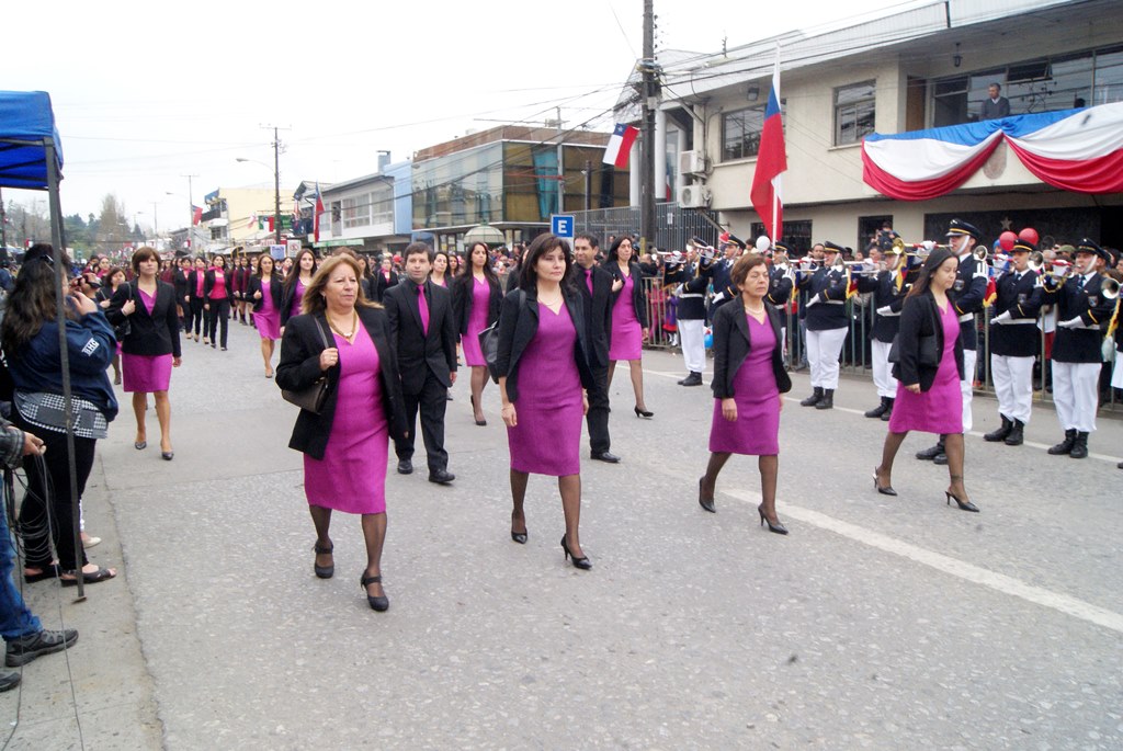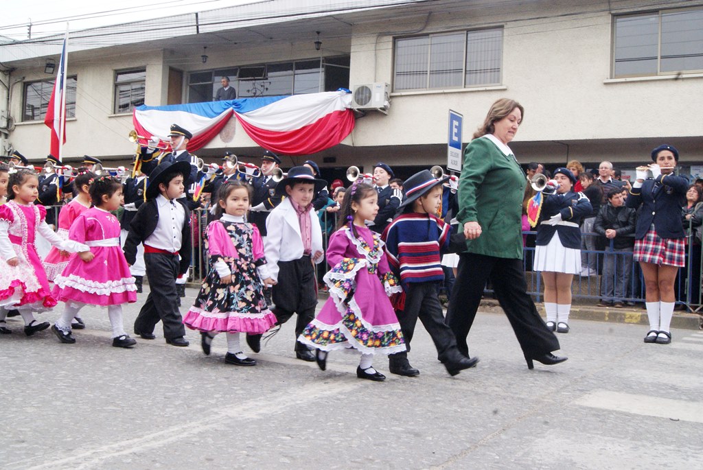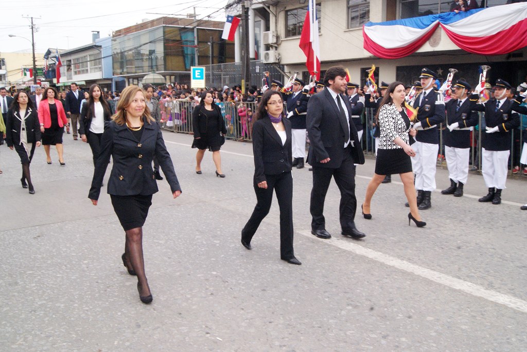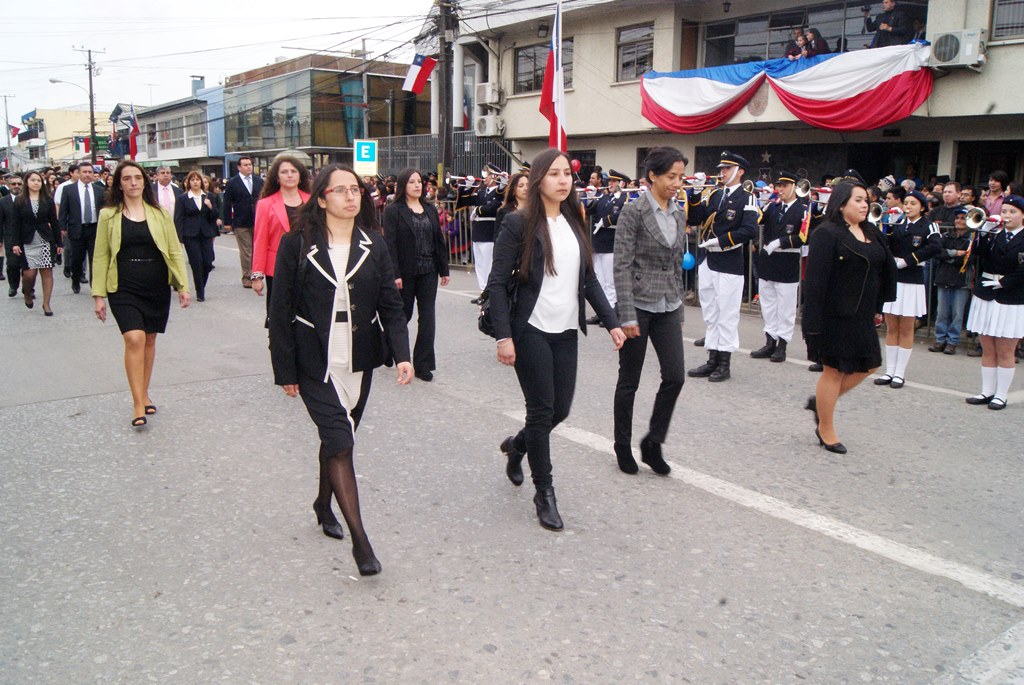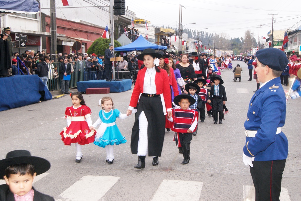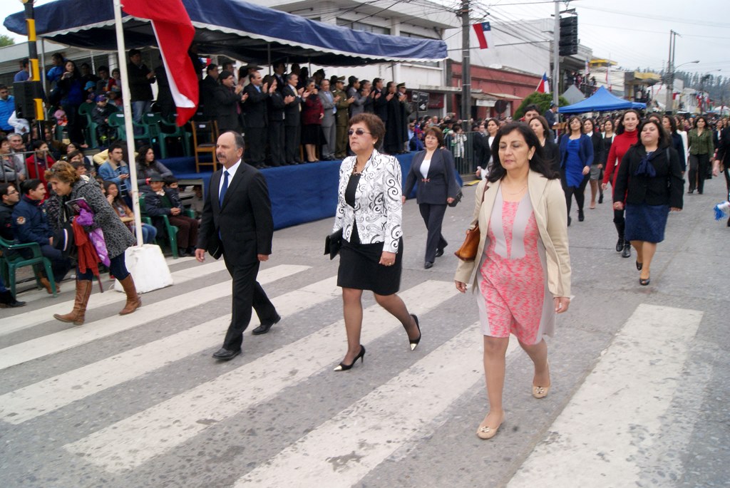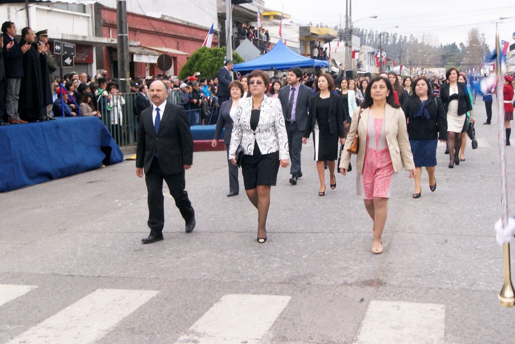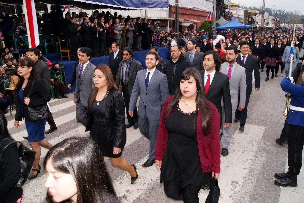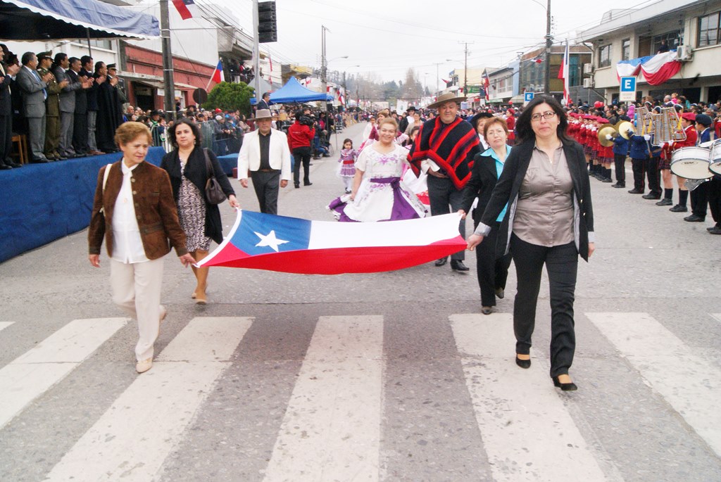 Fueron las bandas de guerra de la Escuela Andrés Alcázar y Liceo Héroes de la Concepción, quienes con sus sones marcaron el paso de las diferentes unidades educativas, las que encabezadas por sus directivos y docentes desfilaron impecables frente a las autoridades y la comunidad; también se sumaron al desfile y como es habitual, diferentes organizaciones sociales y comunitarias como clubes de adultos mayores y la Unión Comunal de Juntas de Vecinos, damas de Rojo, agrupaciones deportivas y bomberos. Al cierre del desfile pasaron el Club de Huasos de Laja, Los Amigos del Caballo de Santa Elena y la Agrupación Ecuestre Carlos Gottschalk; “chinas y huasos” acapararon las miradas por sus coloridas y elegantes vestimentas y la hermosura de sus bestias, fieles ejemplos de la raza del Caballo Chileno.