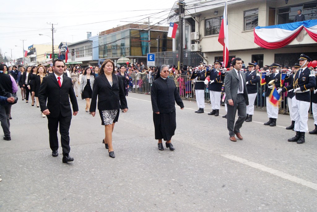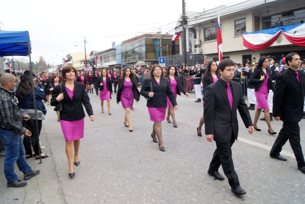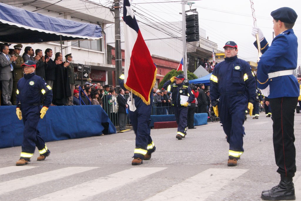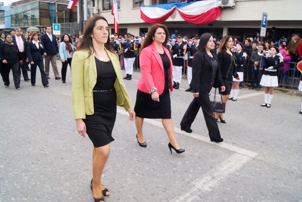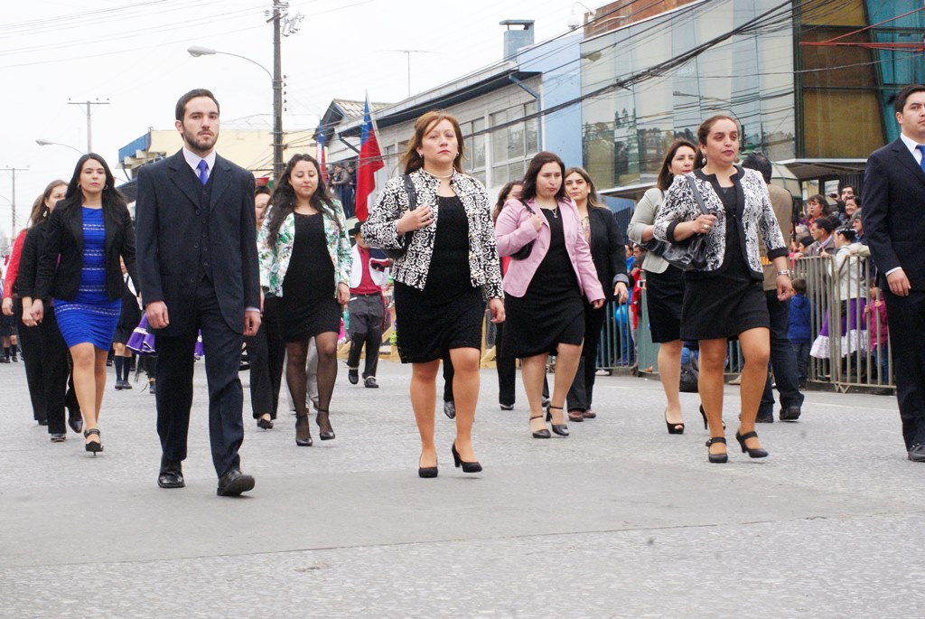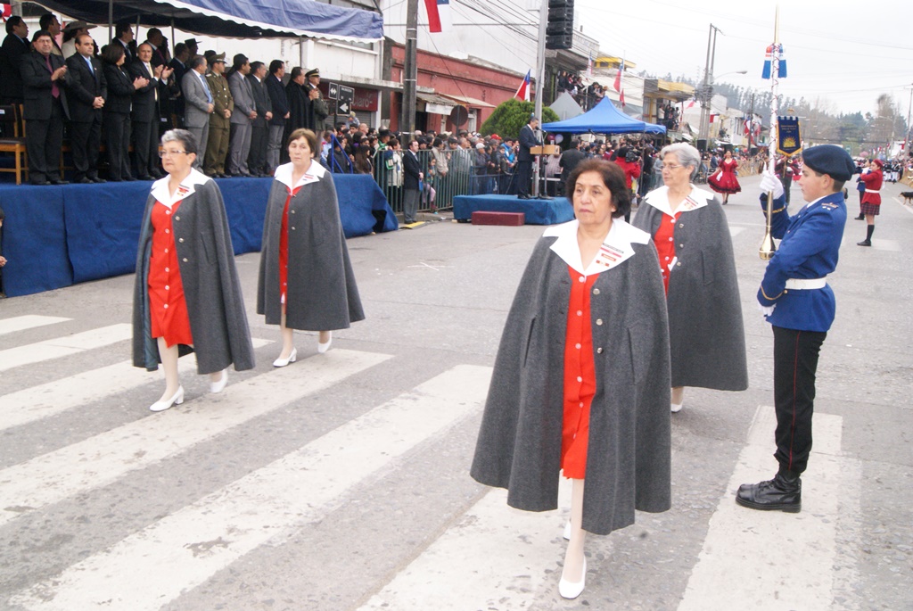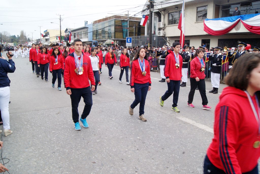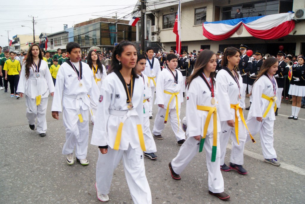 Fueron las bandas de guerra de la Escuela Andrés Alcázar y Liceo Héroes de la Concepción, quienes con sus sones marcaron el paso de las diferentes unidades educativas, las que encabezadas por sus directivos y docentes desfilaron impecables frente a las autoridades y la comunidad; también se sumaron al desfile y como es habitual, diferentes organizaciones sociales y comunitarias como clubes de adultos mayores y la Unión Comunal de Juntas de Vecinos, damas de Rojo, agrupaciones deportivas y bomberos. Al cierre del desfile pasaron el Club de Huasos de Laja, Los Amigos del Caballo de Santa Elena y la Agrupación Ecuestre Carlos Gottschalk; “chinas y huasos” acapararon las miradas por sus coloridas y elegantes vestimentas y la hermosura de sus bestias, fieles ejemplos de la raza del Caballo Chileno.