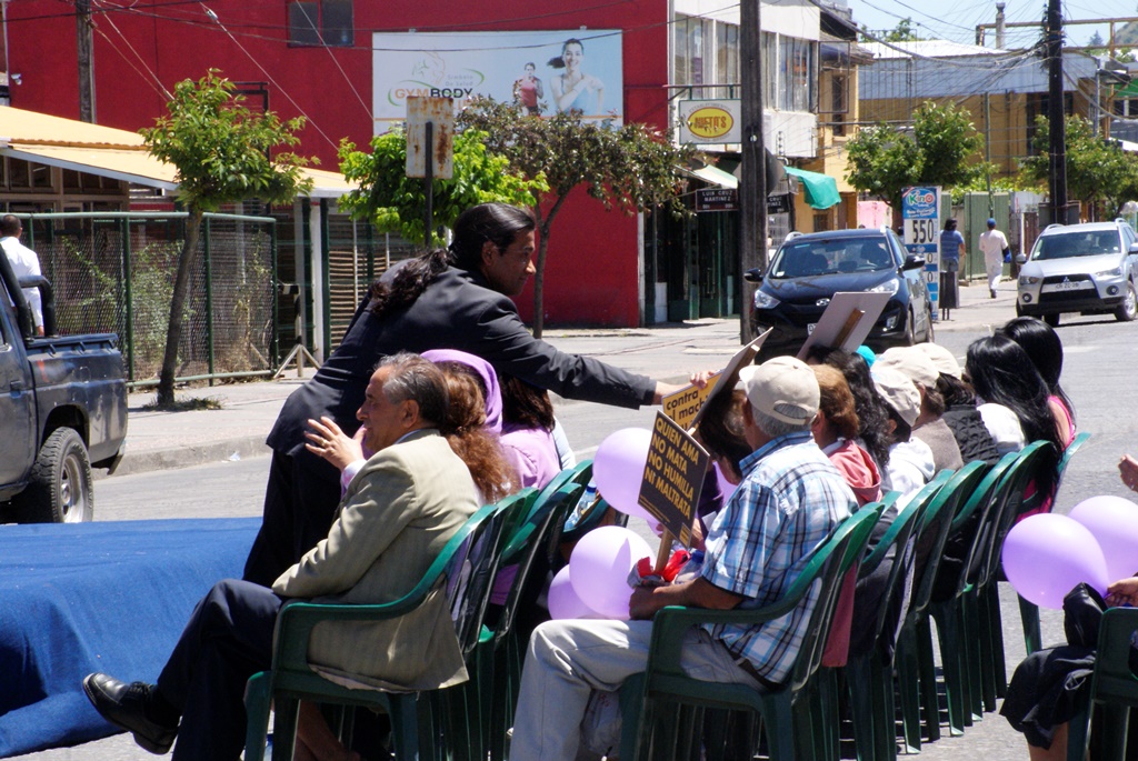 En el marco de la celebración del Día Internacional de la Eliminación de la Violencia contra la Mujer, se efectuó la mañana del lunes 25 de noviembre una marcha por las calles de la ciudad, la cual partió en la ribera Sur de la laguna La Señoraza, lugar donde hubo actividades recreativas hasta la plaza cívica de la comuna. En esta caminata participaron un gran número de estudiantes de los establecimientos comunales, acompañados por sus directores, agrupaciones sociales, y autoridades, portando carteles y lienzos.
