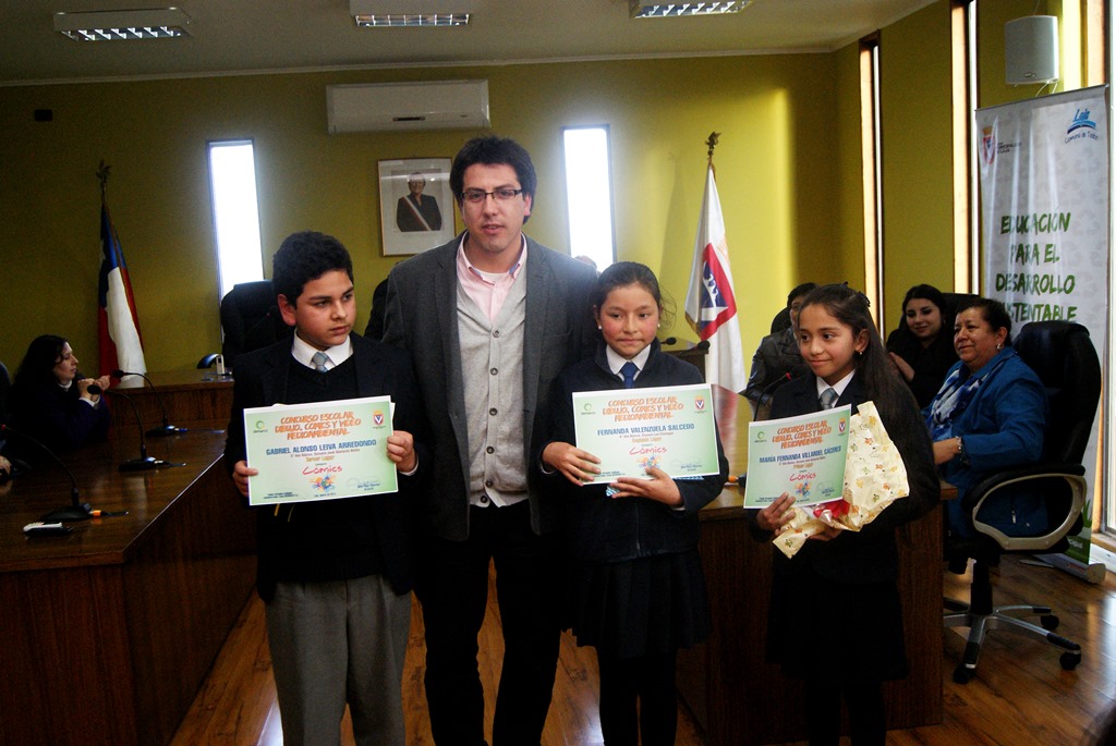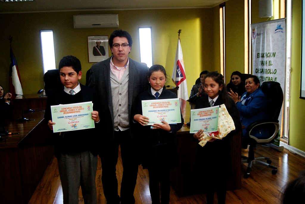 Los trabajos ganadores fueron premiados en una ceremonia realizada en la sala del concejo la tarde del jueves 21, de la cual fueron parte el alcalde José Pinto y el Administrador Zonal de Demarco Pablo Ormeño, junto a directores de unidades educativas, profesionales de la unidad de medio ambiente, estudiantes premiados y sus padres.