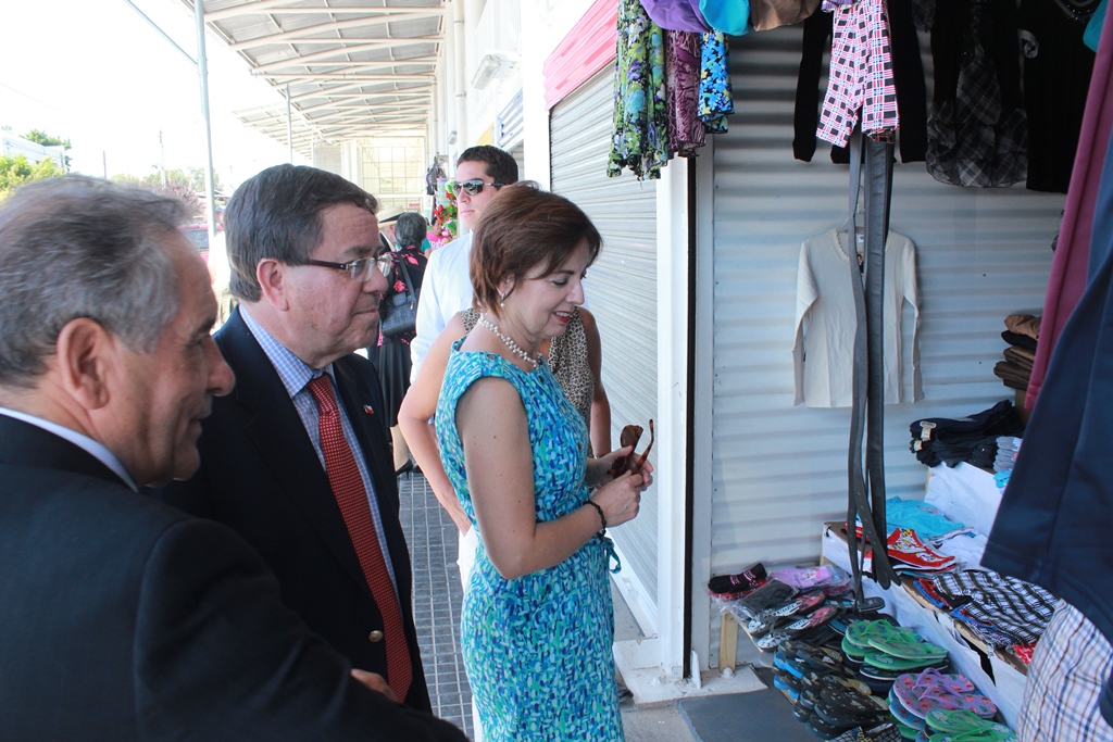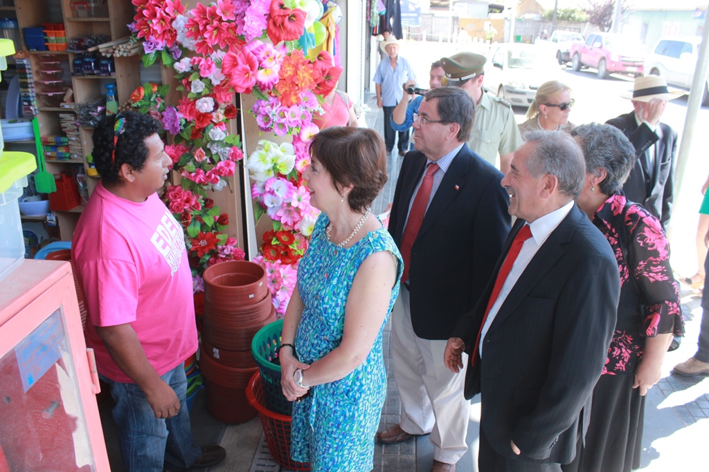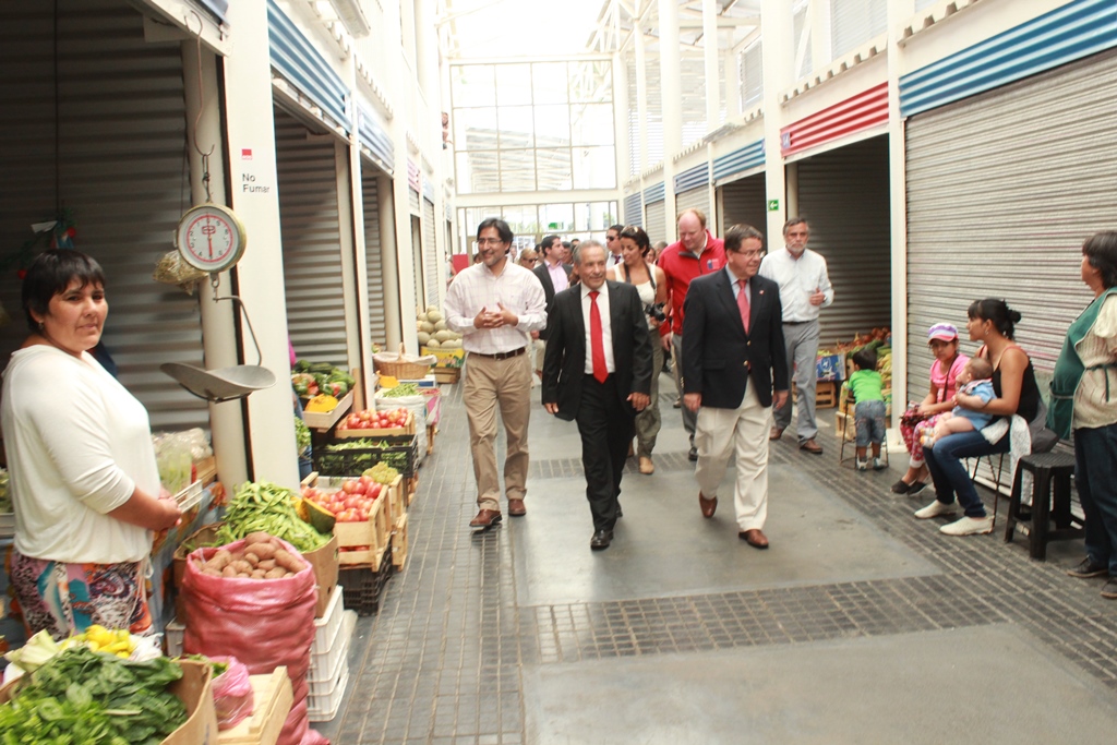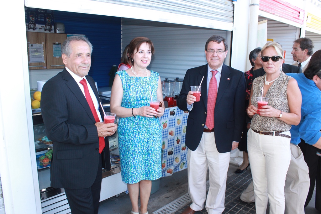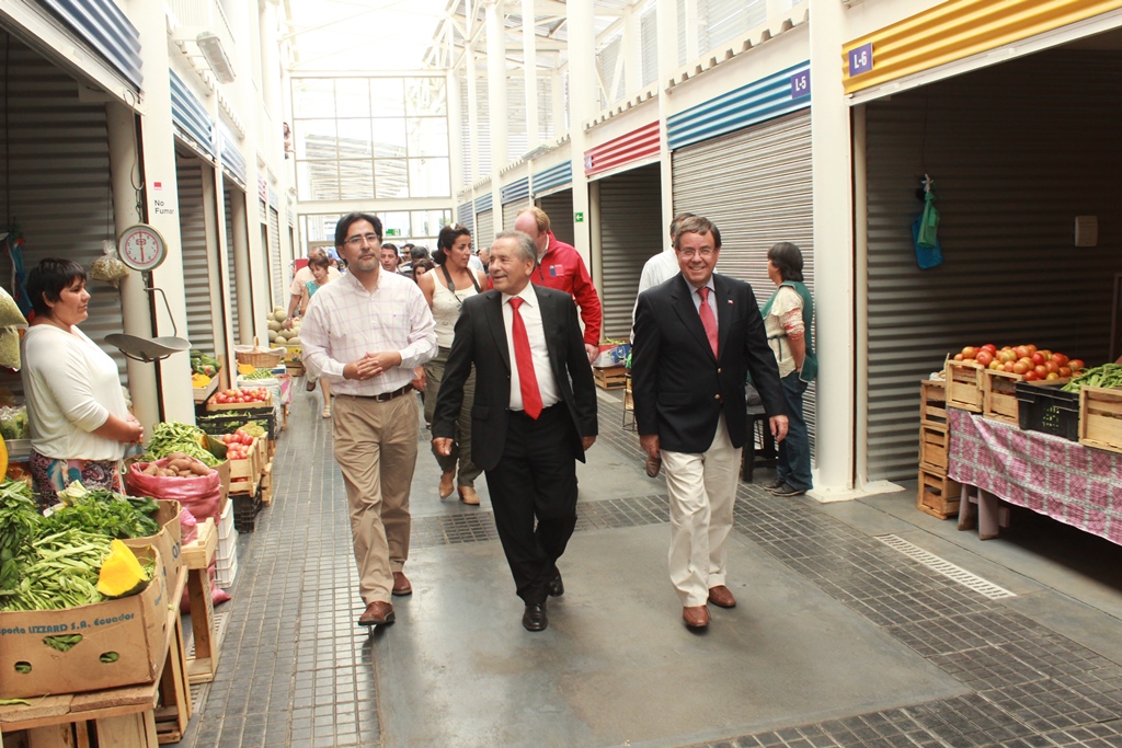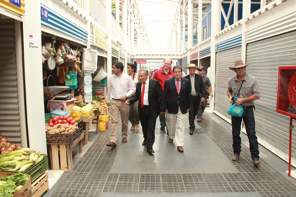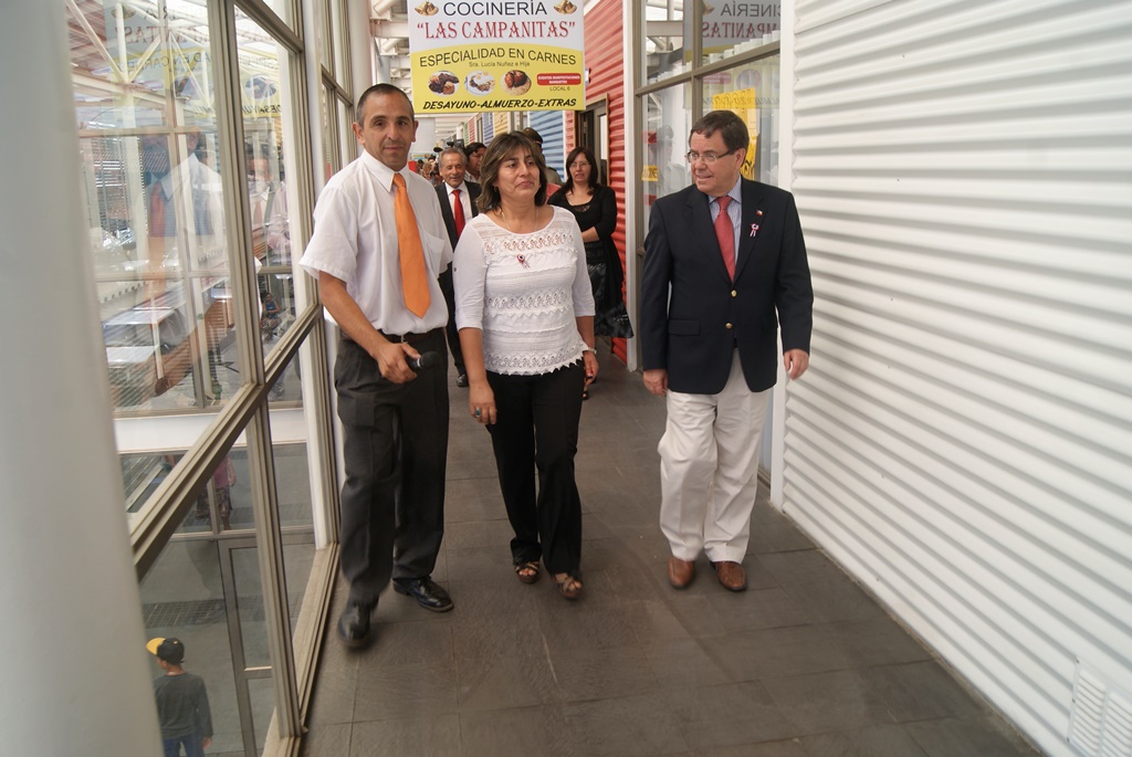 El Intendente Lobos junto al Alcalde Pinto recorrieron el nuevo mercado, saludando a los comerciantes e interiorizándose de lo que cada cual ofrece en sus modernos locales.