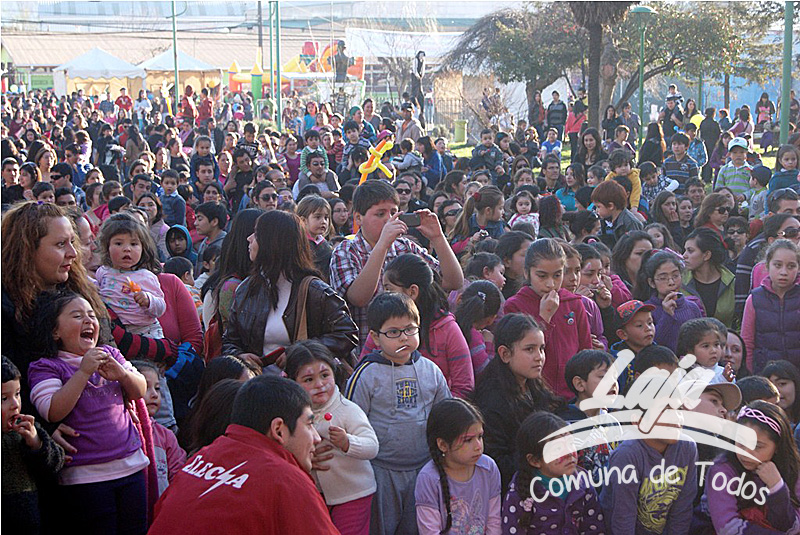 Una hermosa fiesta de celebración vivieron los niños lajinos la tarde del sábado 17 en la plaza cívica de la comuna, gozaron de un espectáculo de canto, baile y concursos en que también participaron los padres y madres. Hubo golosinas, dulces y globos, caritas pintadas para todos los pequeños, además de camas elásticas, juegos inflables y paseos en motos por parte de Carabineros, quienes se sumaron a esta celebración comunal.