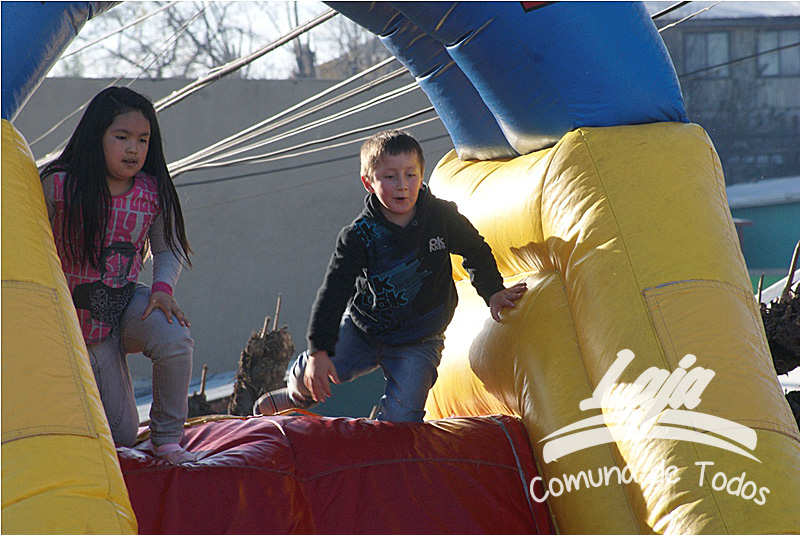 Fue la fiesta organizada por el Municipio de Laja para celebrar el Día del Niño, ya que el viernes 9 se había realizado la misma celebración para los niños del sector rural, la fiesta de ese día se vivió en la escuela de Puente Perales, hasta donde se transportó a los escolares de todas las unidades educativas del campo, superando los quinientos menores.