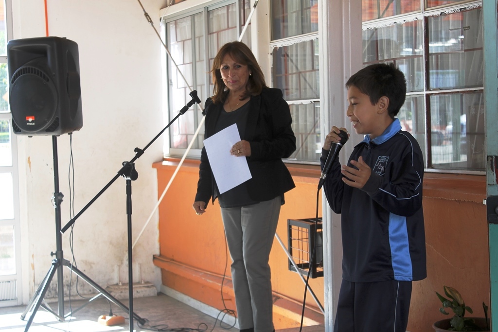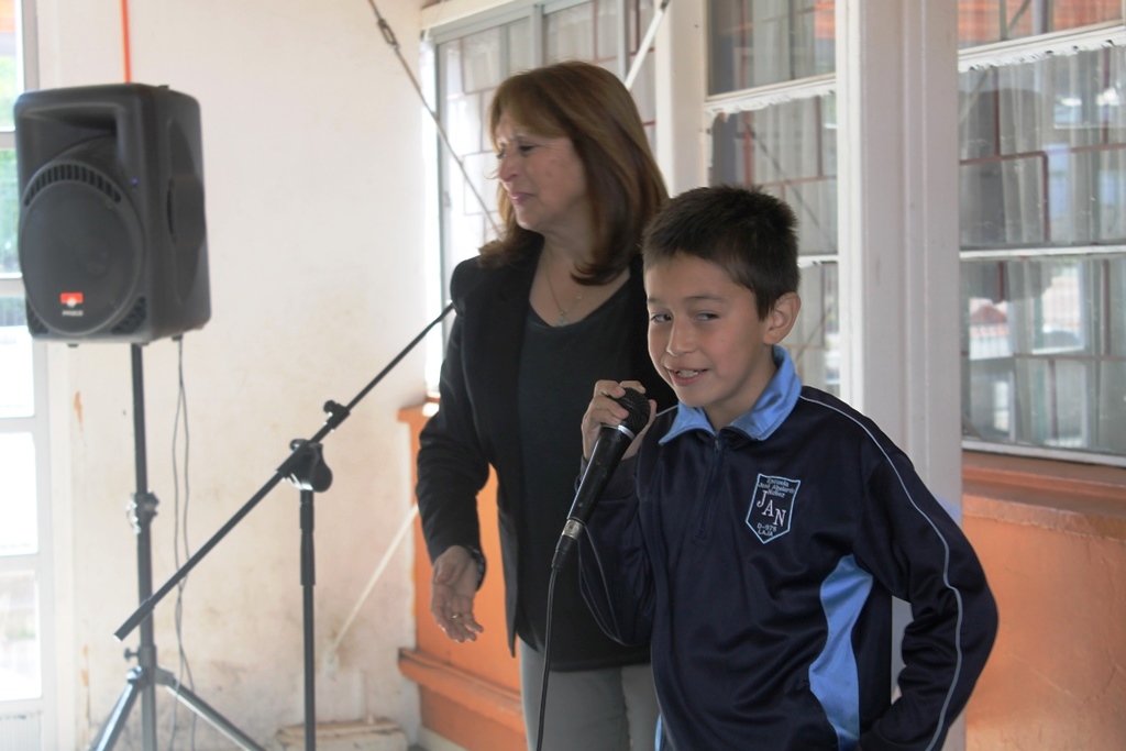 Al término, Matías tomó el micrófono y con desplante agradeció el regalo, que seguro le permitirá trabajar de mejor manera junto a sus compañeros y profesores.